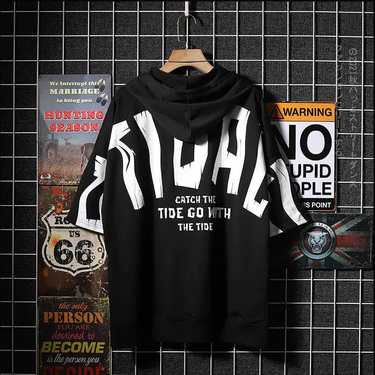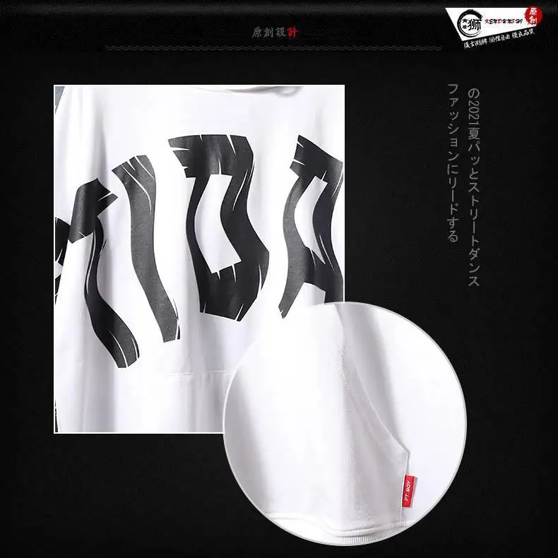 Мужская футболка с капюшоном, летняя свободная футболка с коротким рукавом, с надписью, в японском стиле, 2021