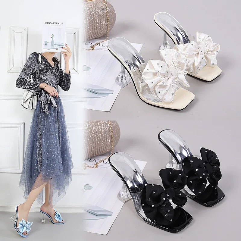 Женские туфли-лодочки с бантом-бабочкой, прозрачные туфли на высоком каблуке, размер 43