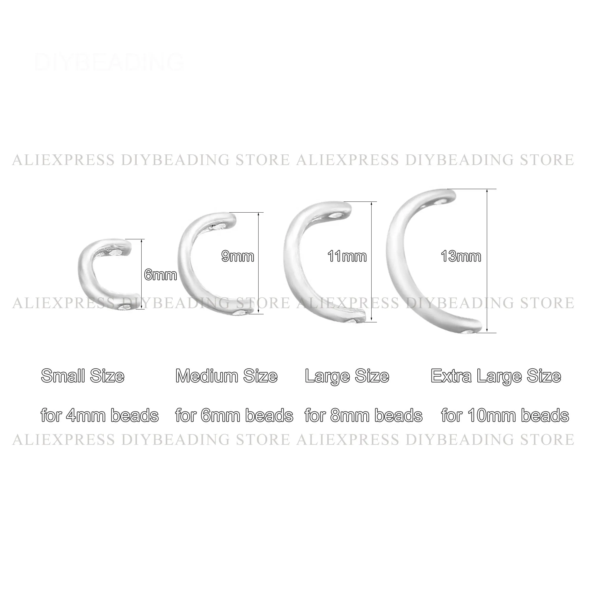 Полукруглая рамка из серебра 925 пробы, 4-50 шт., для бусин 4 мм, 6 мм, 8 мм, 10 мм, с 2 отверстиями