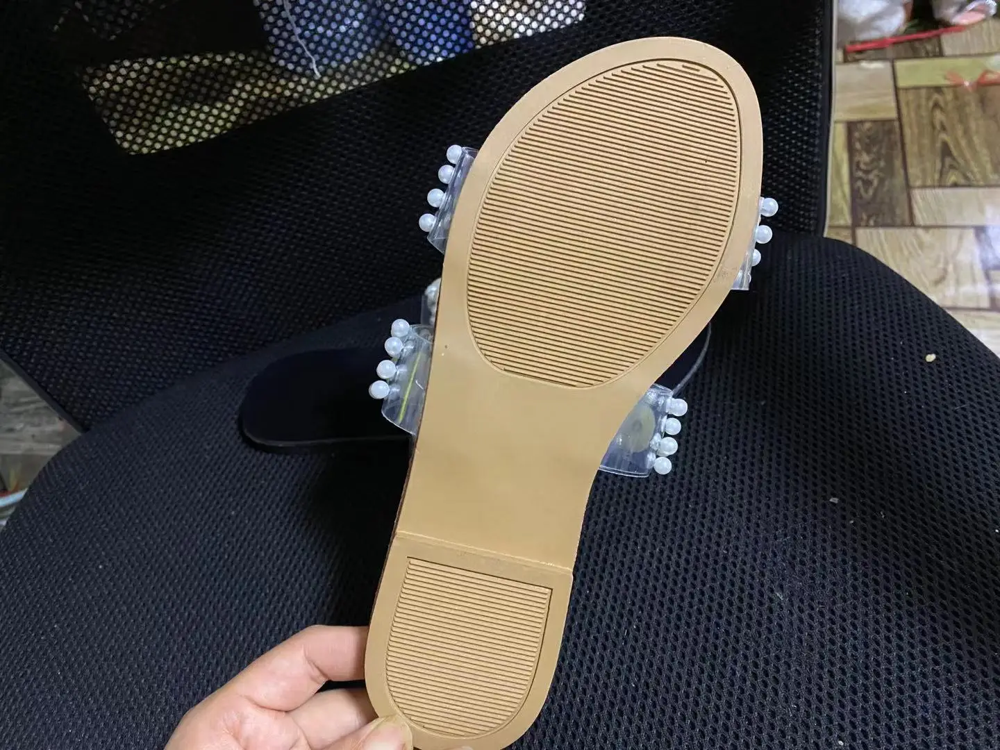 Сандалии Женские однотонные с жемчугом, уличные пляжные босоножки на плоской подошве с открытым носком, модные босоножки больших размеров 35-43, лето 2021