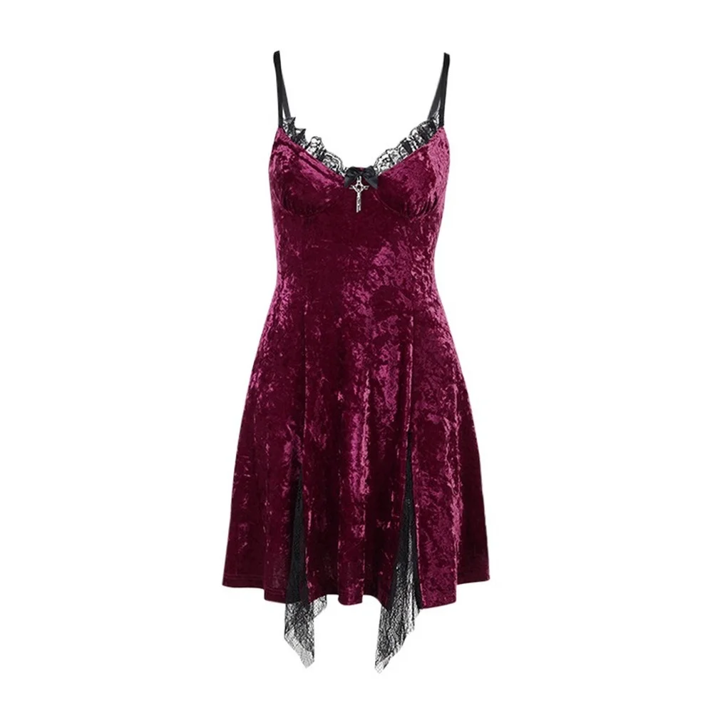 Торговый центр в готическом стиле, винтажные бархатные гранж мини платья для женщин пикантные туфли с низким вырезом с высокой талией платье с разрезами, проект "Готик Лолита благородный бархатные вечерние платья