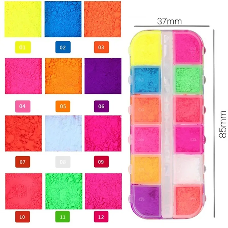12 цветовкоробка, флуоресцентные неоновые пигментные тени для век, палитра для макияжа, блестящие мерцающие тени для век, косметические инструменты для боди-арта