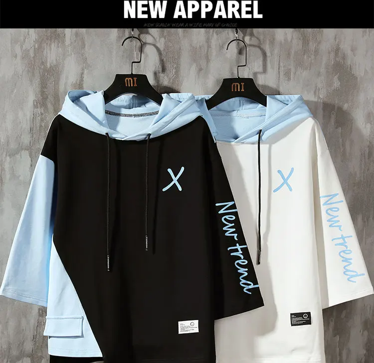 Мужская футболка с капюшоном, летняя свободная футболка с коротким ...