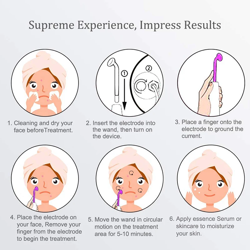Устройство для электротерапии и ухода за кожей, Высокочастотный электрод, 7 в 1, точечный очиститель лица