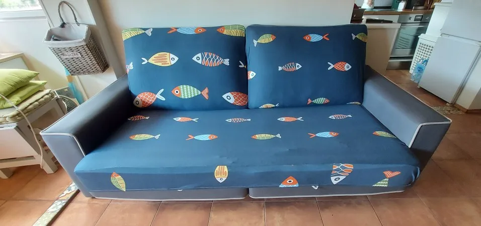 Очень хорошая ткань и мягкая текстура. Единственным недостатком является то, что они пришли ко мне из двух обложек, которые я заказал для части опор 2 разных размера рыбы и разных синих. Здесь я выкладываю фотографии измерений рыбы. Я постараюсь требовать. Чтобы увидеть, что они говорят мне. Но я рекомендую магазин. Это очень красиво.