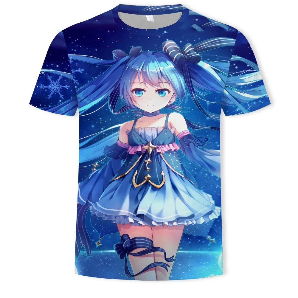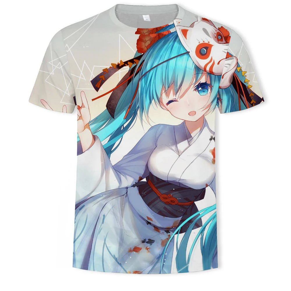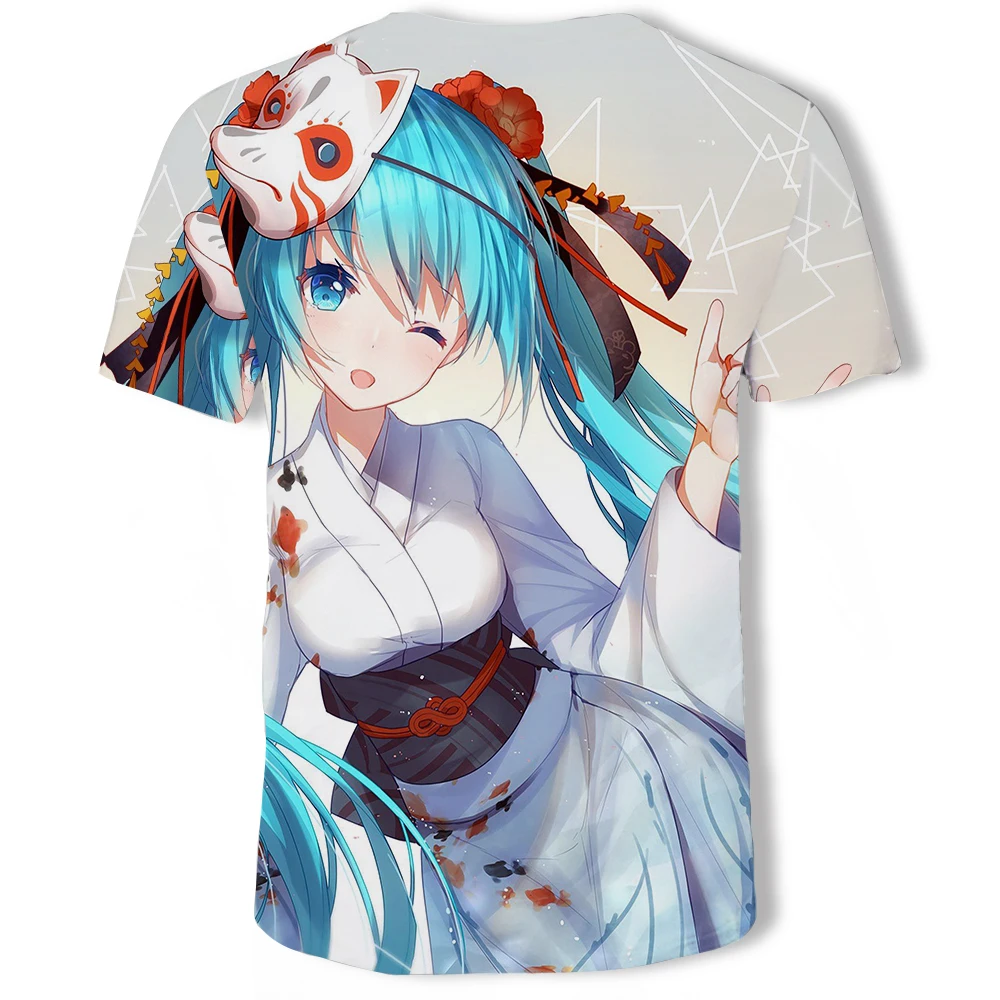 Универсальная уличная футболка для девочек с 3D принтом, однотонная летняя трендовая двухмерная футболка с круглым вырезом и короткими рукавами для красивой девушки из аниме