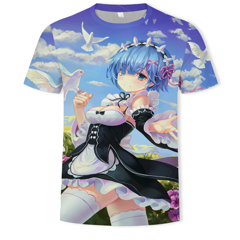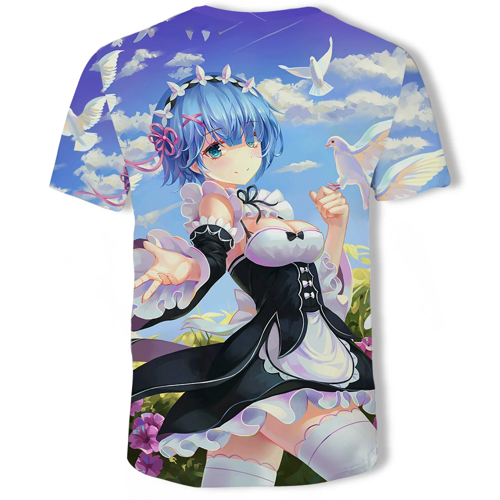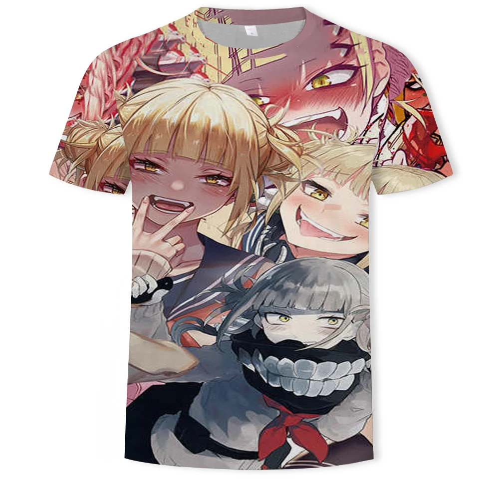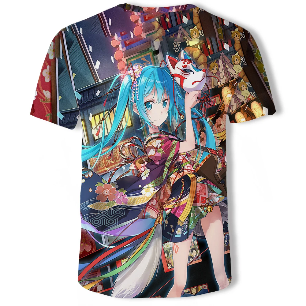 Универсальная уличная футболка для девочек с 3D принтом, однотонная летняя трендовая двухмерная футболка с круглым вырезом и короткими рукавами для красивой девушки из аниме