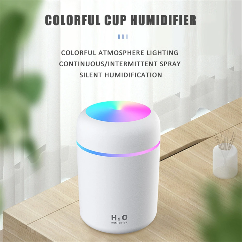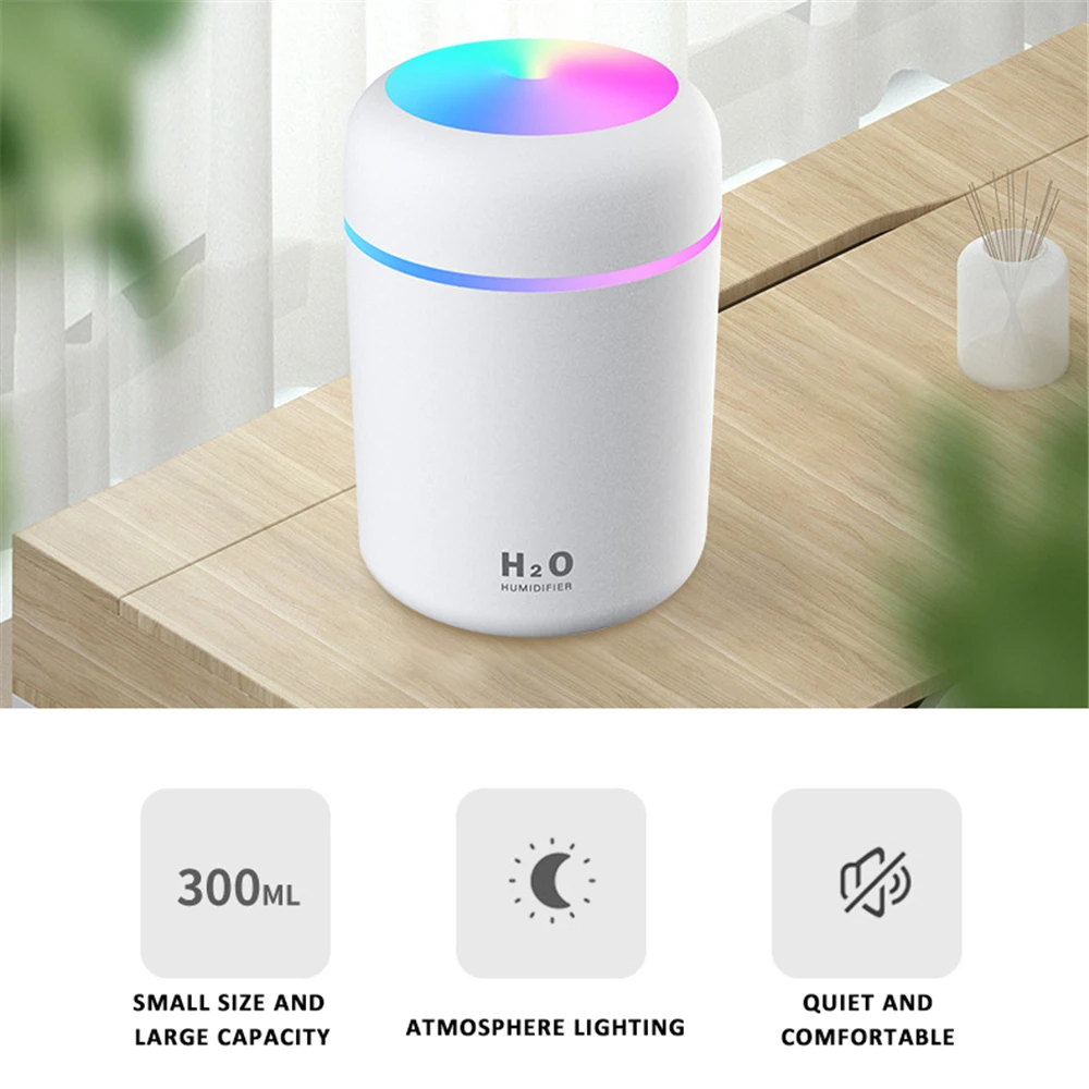 Портативный ультразвуковой увлажнитель воздуха 300 мл, USB-увлажнитель воздуха для дома и автомобиля, генератор тумана с цветными подсветками, настольный мини-увлажнитель воздуха для офиса