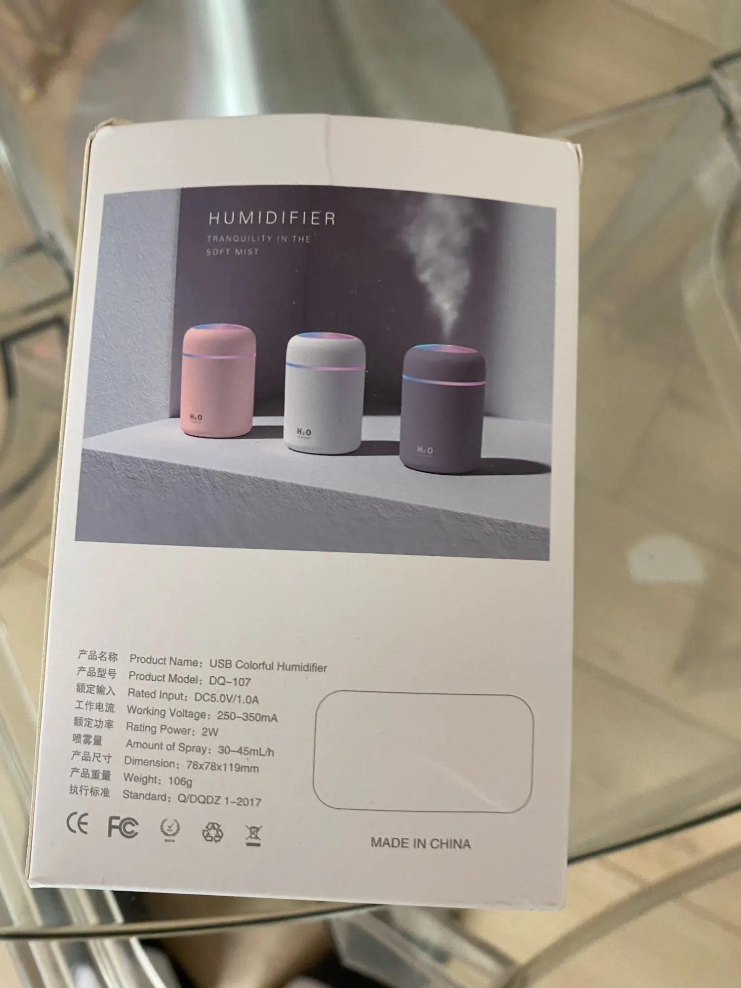 1*300 мл цветной USB увлажнитель воздуха1 * USB кабель1 * заменяющий фильтр (подарок)1 * Руководство пользователя