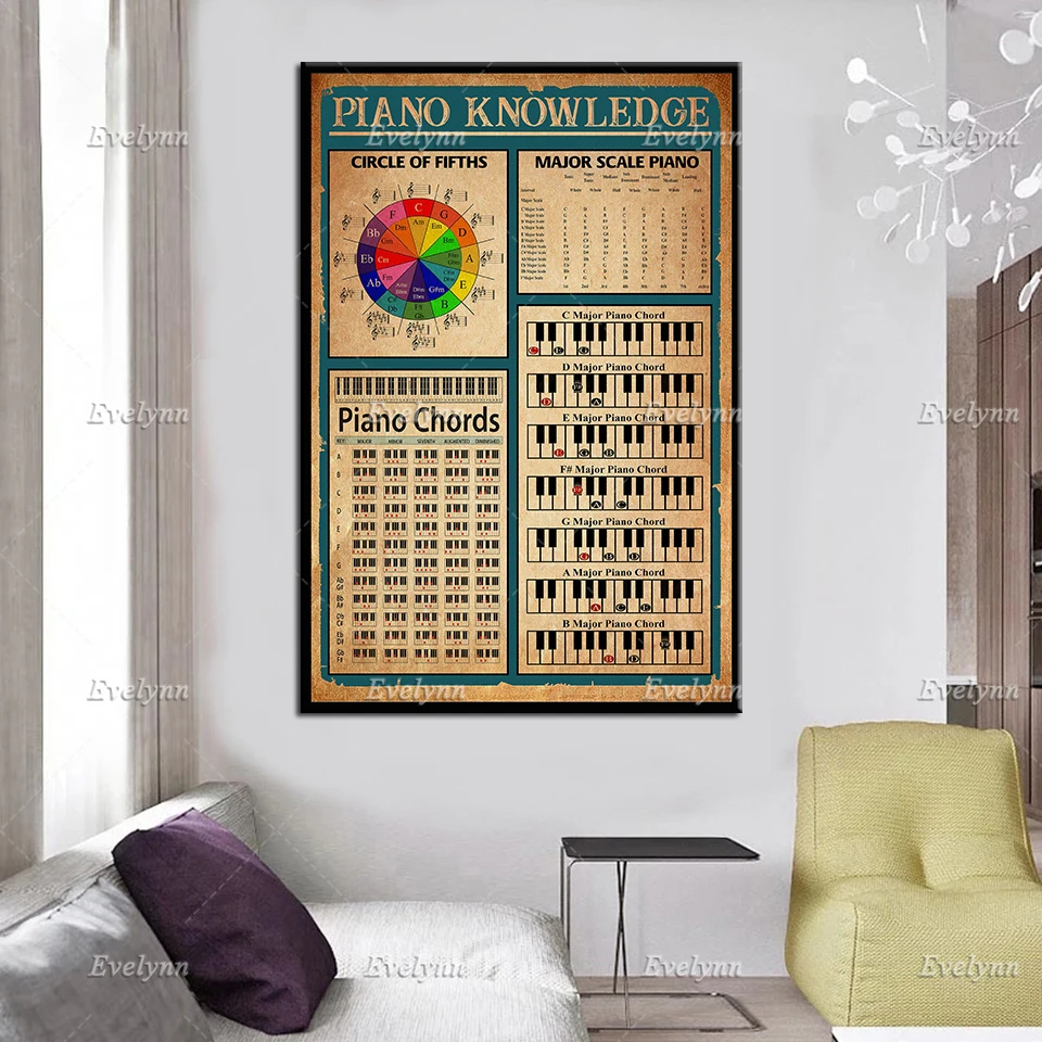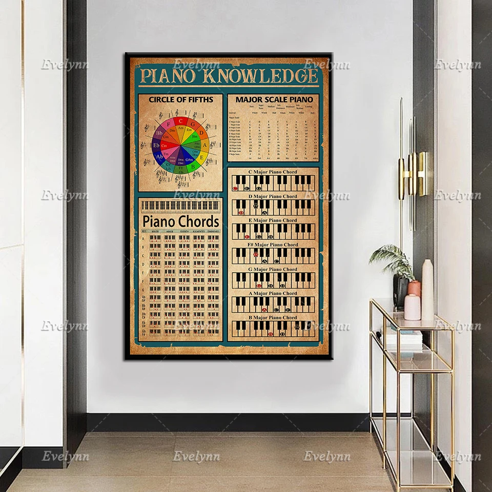 Плакат для знаний о пианино, плакаты для пианино, Художественная печать, холст для пианино в масштабе мажорной гаммы, декор для стен в музыкальной студии, Декор для дома, подарок