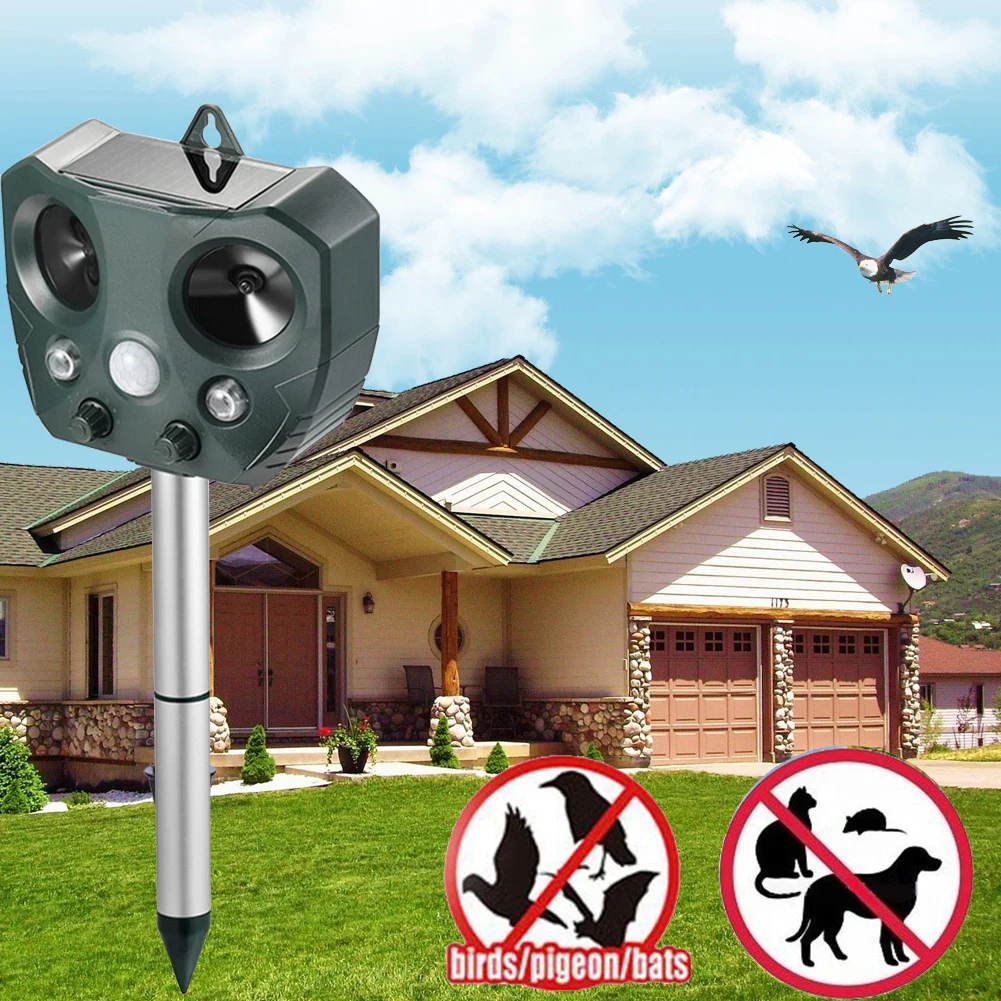 Регулируемый сверхзвуковой отпугиватель на солнечных батареях для птиц, змей, собак, инфракрасный датчик звука, сдерживающий уличный Репеллент для сада и животных