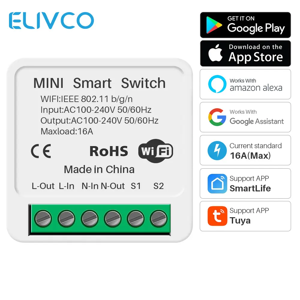 Умный Wi-Fi-выключатель, 16 А, с поддержкой Google Home и Alexa