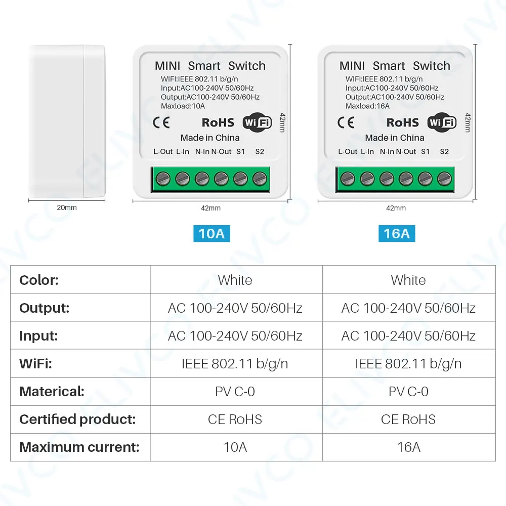 Модель: WiFi Smart SwitchПроводка: прямой провод и нейтральный проводЦвет: белыйВыход: AC 100-240V 50/60HzСветодиодный светильник: 150 Вт (Ma x)Вход: AC 100-240V 50/60HzWi-Fi:IEEE 802.11b/g/n (2,4 ГГц)Материал: PCV-0Сертифицированный продукт: CE ROHSМаксимальный ток: 16АРаботает с: Alexa,Google Assistant