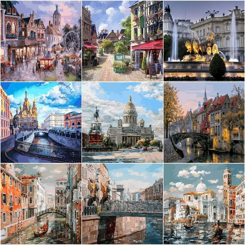 GATYZTORY рамка 60x120 см город DIY Краска по номерам Акриловая Кра...