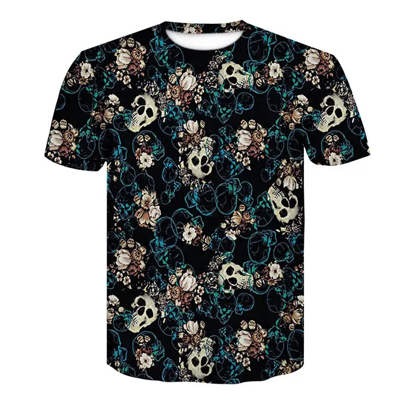 Футболки с рисунком черепа, мужские топы в стиле хиппи, уличная одежда