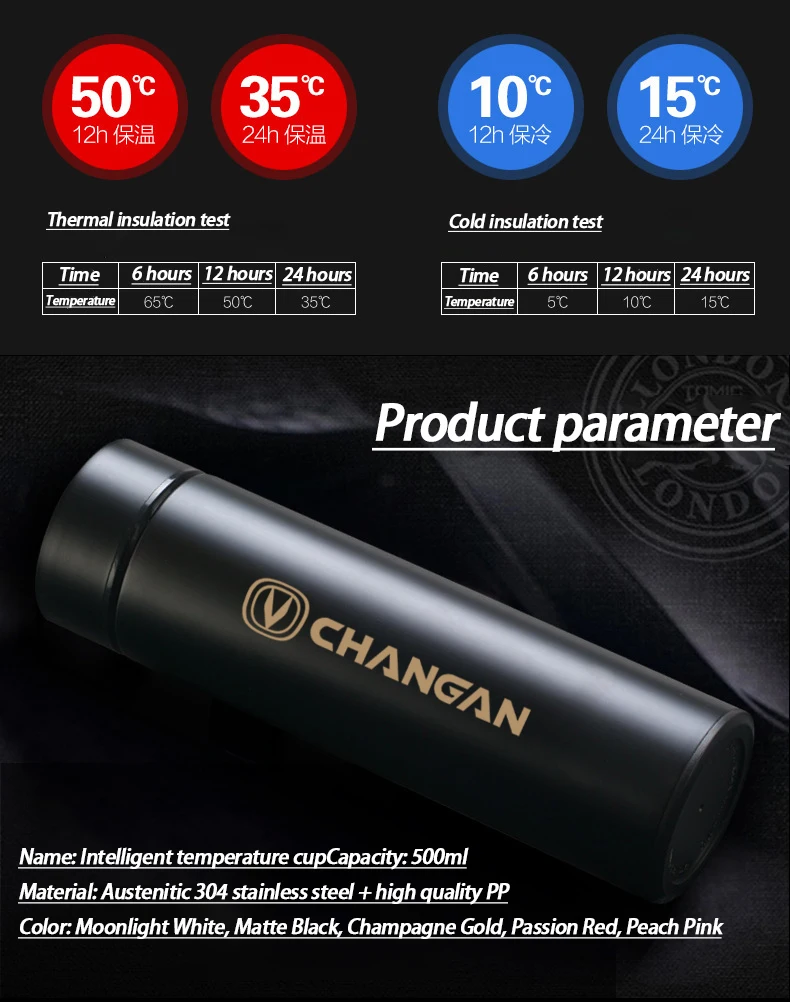 500 мл умный термос с дисплеем температуры, чашка для воды из нержавеющей стали с индивидуальным логотипом для Changan CS35 CS75 CS85 CS95 CS15 CS55 CS55