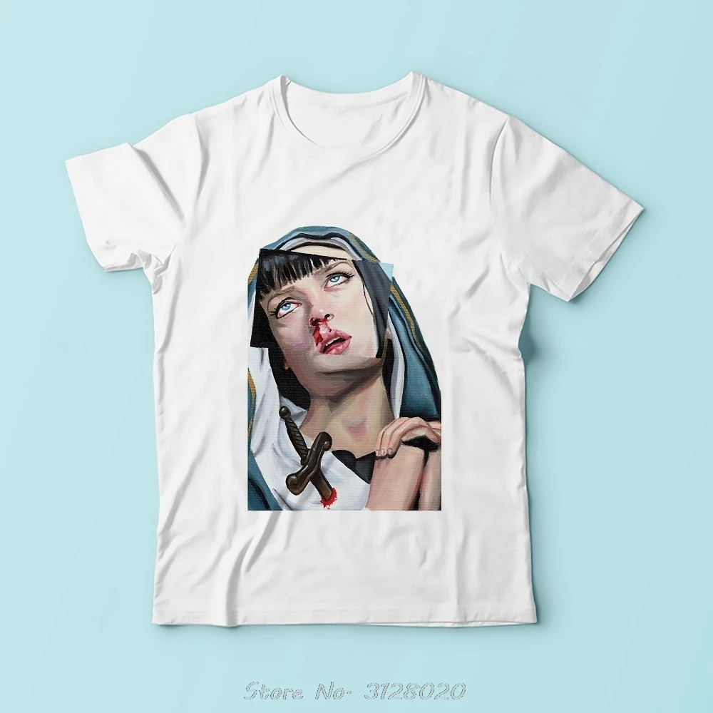 Классическая забавная Мужская футболка криминальной литерати Миа Уоллес Винсент Вега новая белая Повседневная футболка футболки с сублимационным принтом Харадзюку