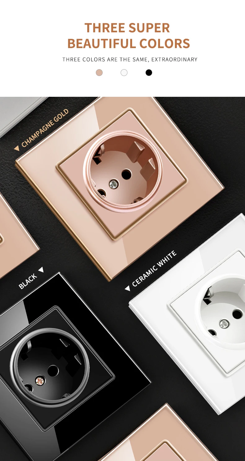 1. Качество гарантировано сертификатами CE, RoHS и CCC Китая2. 100% новая и высококачественная панель розетки.3. Стандарт воспламеняемости: V-04. Европейская розетка подходит для вилки ЕС или Германии.5. Этот продукт должен устанавливаться профессиональным электриком