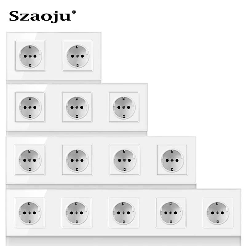 Настенная розетка Szaoju, многокомпонентная, стандартная немецкая розетка AC110-250V Schuko, многослойная панель питания из закаленного стекла 16 А