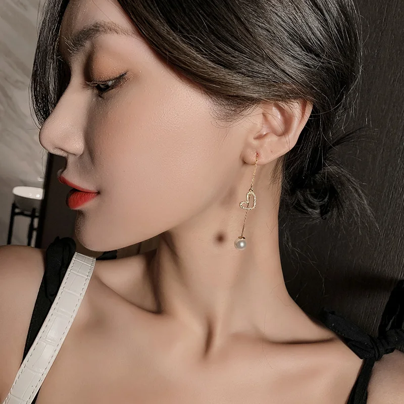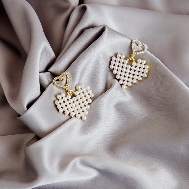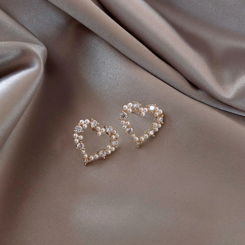 Женские жемчужные серьги в форме стразы, серьги с жемчугом в форме серьги-гвоздики в форме сердца, вечерние, Подарочные ювелирные украшения для девушек и женщин, 2021