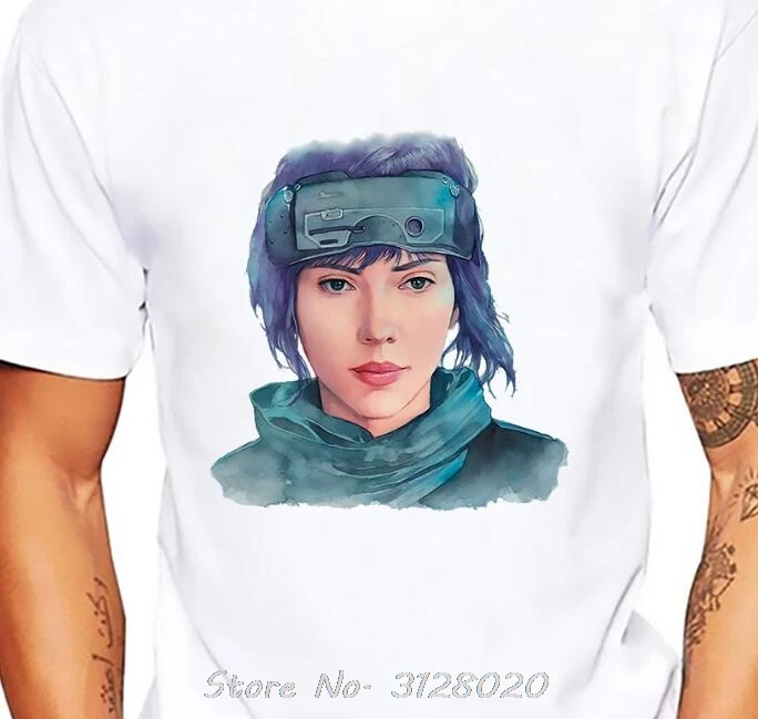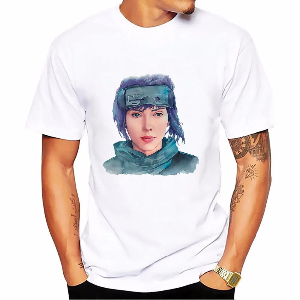 Футболка Мужская дышащая, с изображением призрака, Скарлетт Йоханссон, Мотоко майора, футболка с коротким рукавом, в стиле Харадзюку