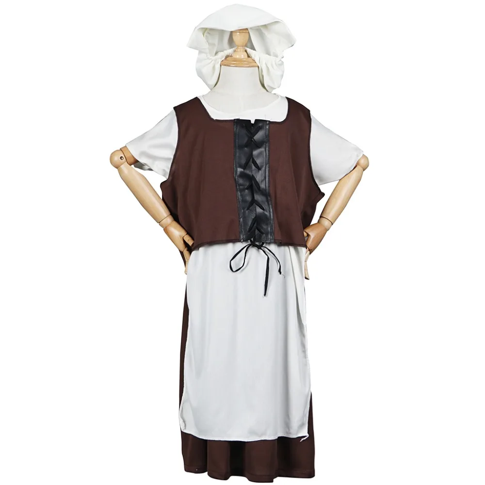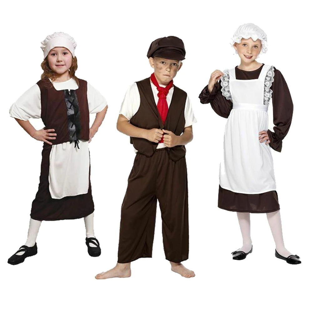 Платье средневековой горничной для косплея девочек, викторианский костюм бедного мальчика, урчина для детей, школьная книга, день недели, костюм на Хэллоуин для детей
