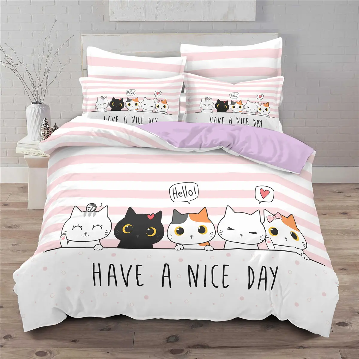 Комплект постельного белья с мультяшными изображениями милых кошек,...