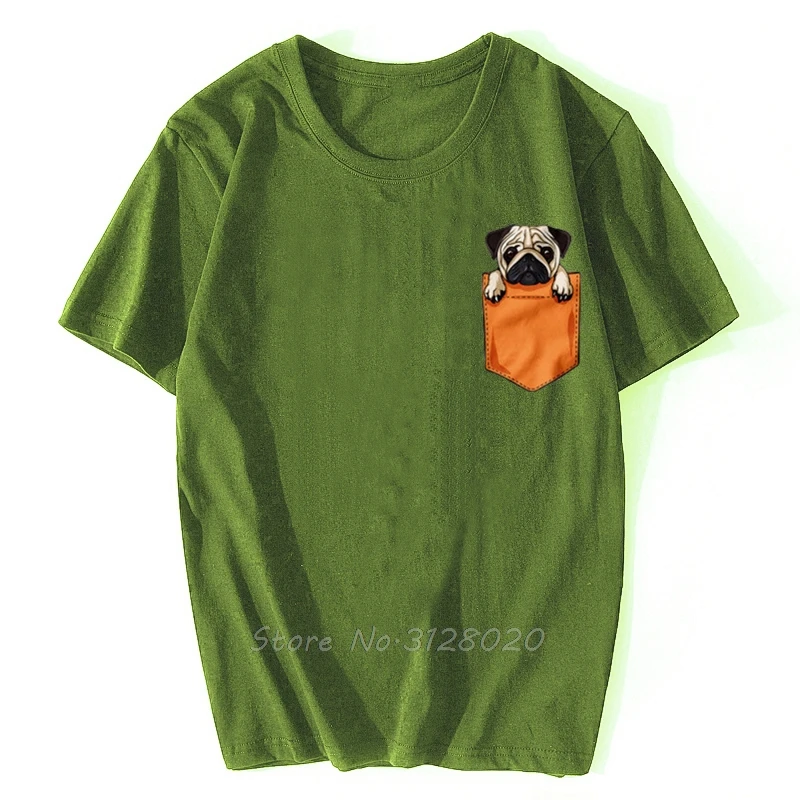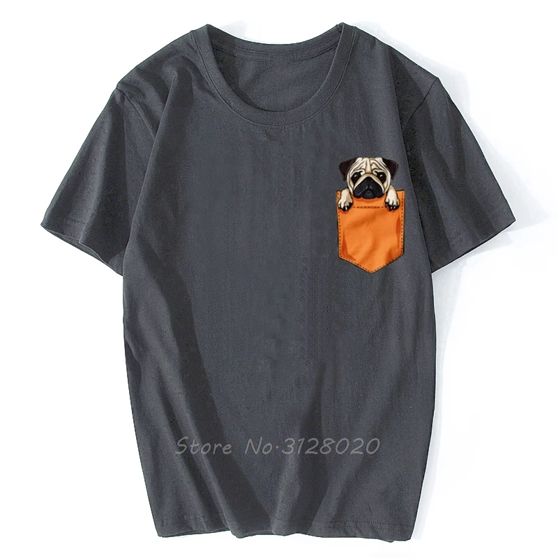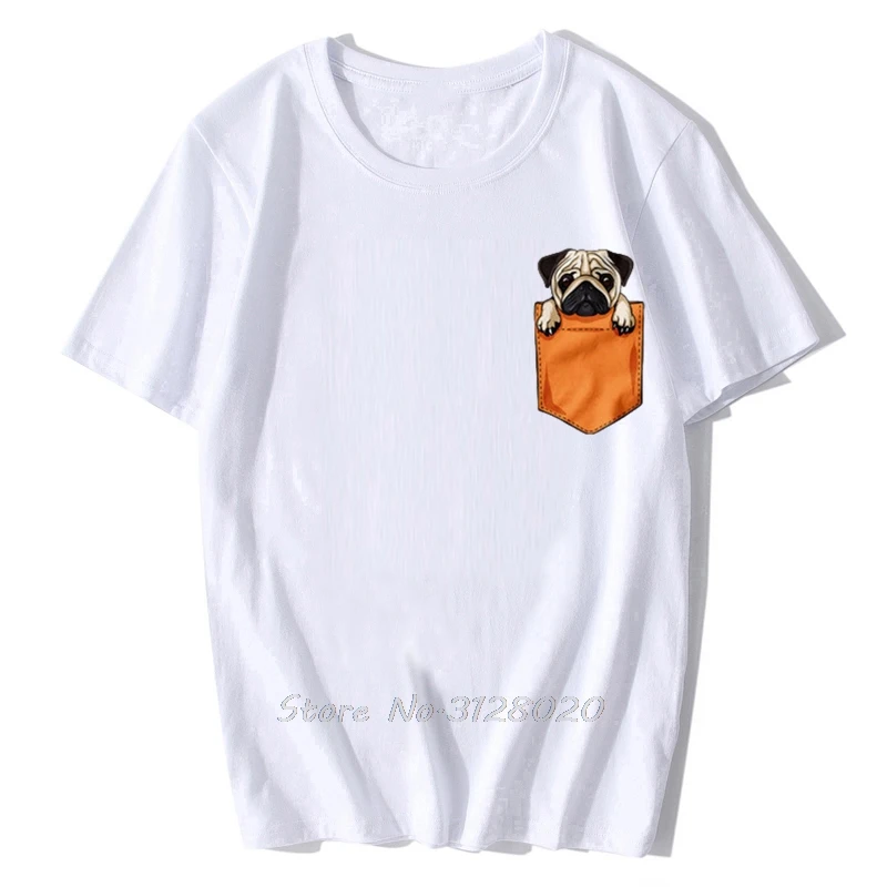Мужские модные хипстерские футболки, летняя мужская футболка, Милая футболка с Мопсом и принтом карманов, футболки без прорезывателя с рисунком собаки