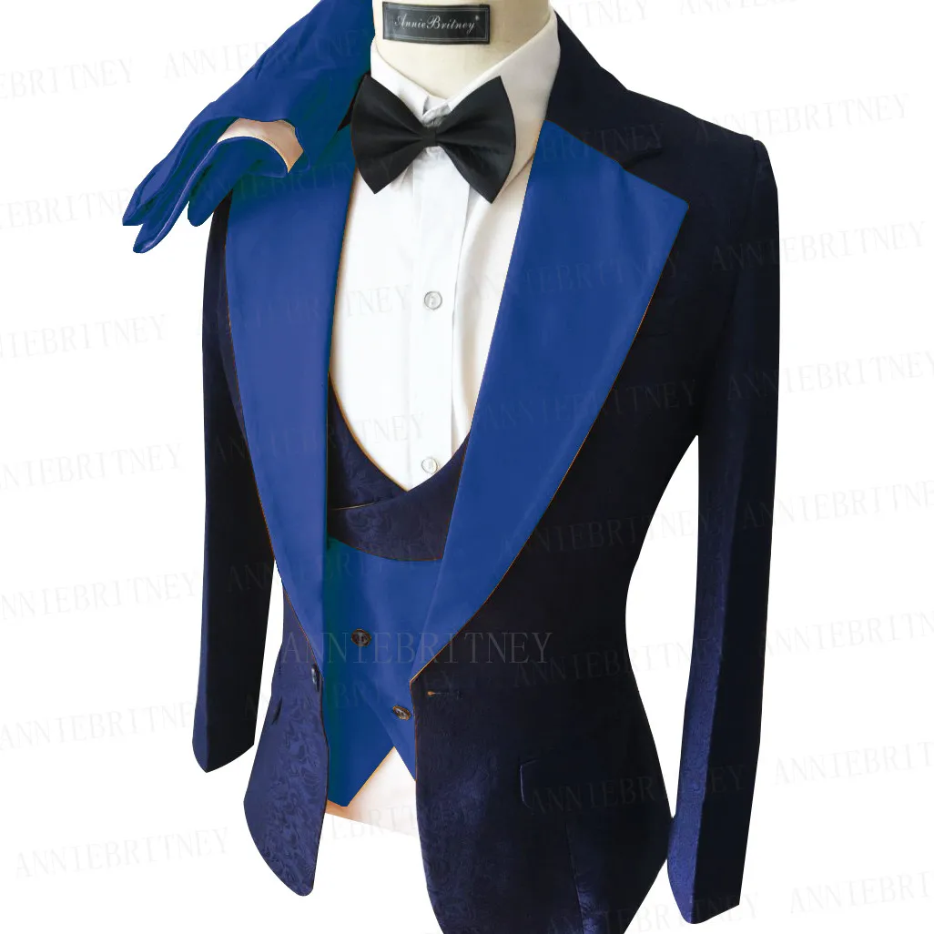 Мужской Жаккардовый костюм с розовым воротником, облегающий свадебный смокинг, Блейзер, жилет и брюки, 3 предмета, 2021