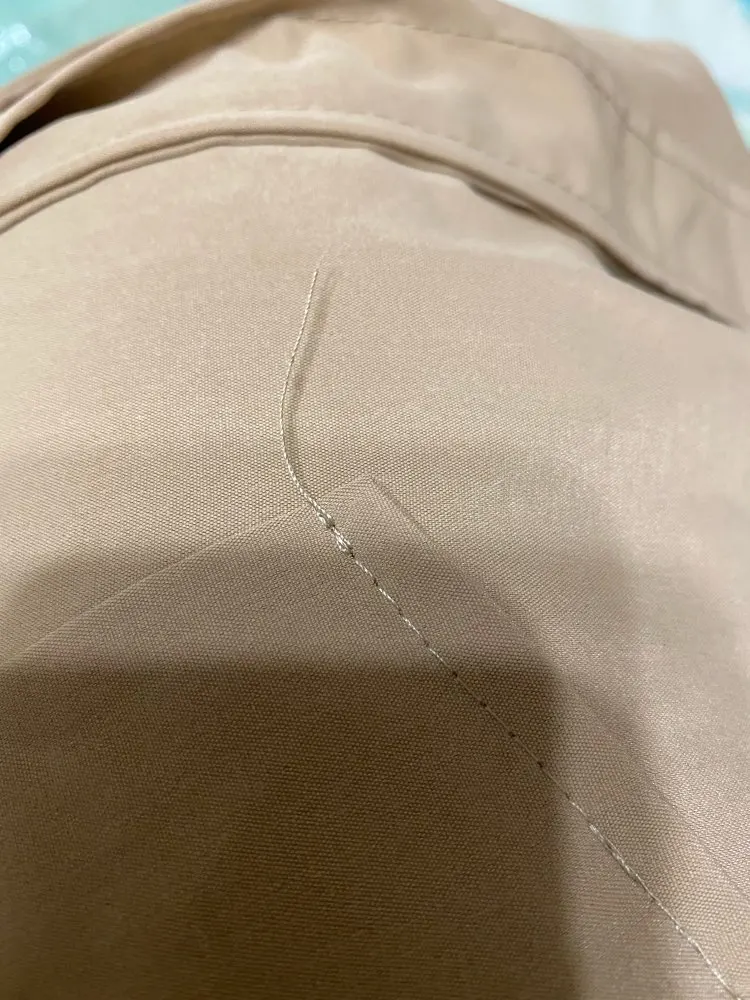 Крой транши неплохой, но он очень тонкий, а рукава не очень длинные. Есть небольшие дефекты шитья, но это все еще может подойти в середине сезона.