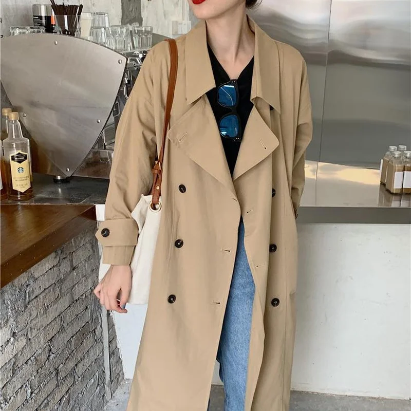 Женский Тренч с регулируемой талией, однотонный двубортный Тренч в британском стиле, универсальная верхняя одежда, 2021