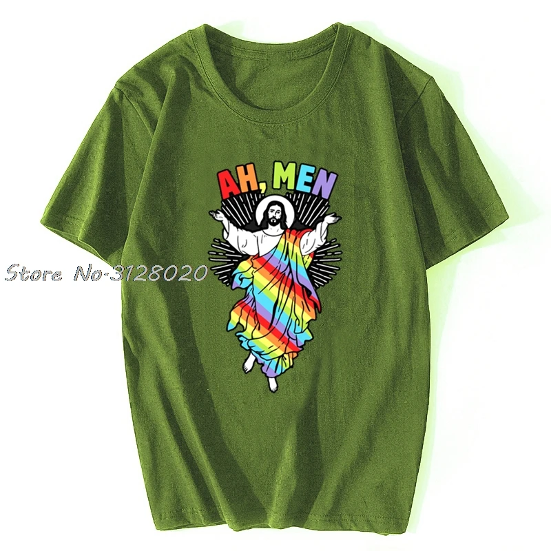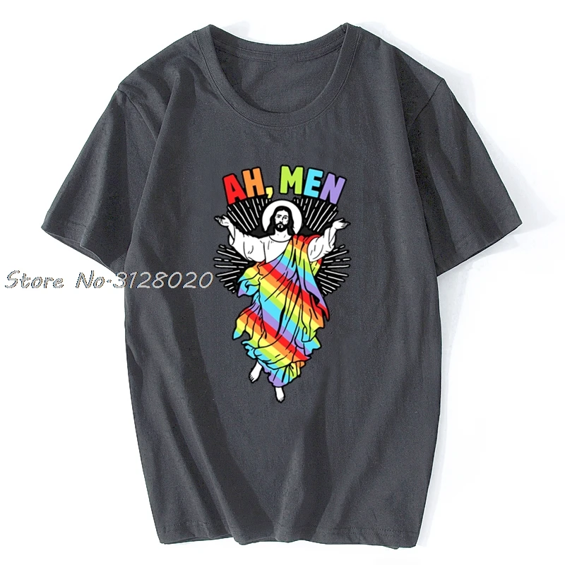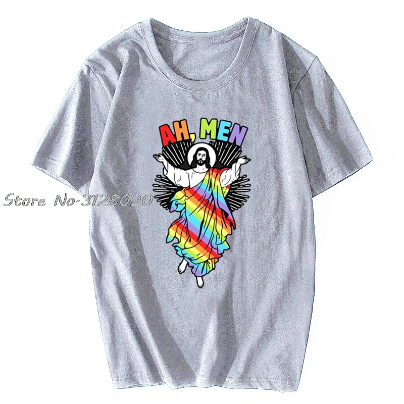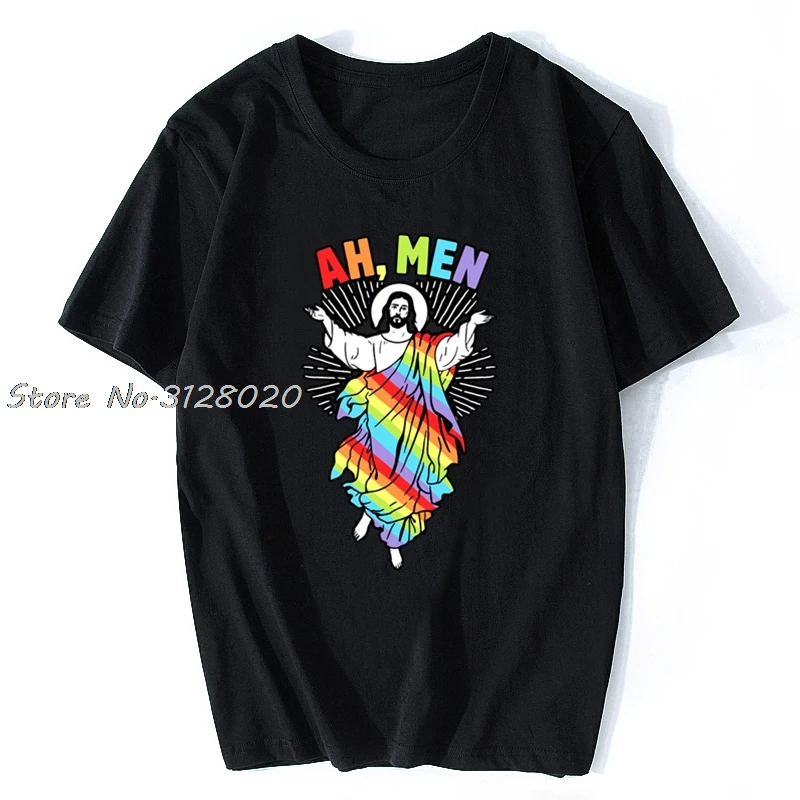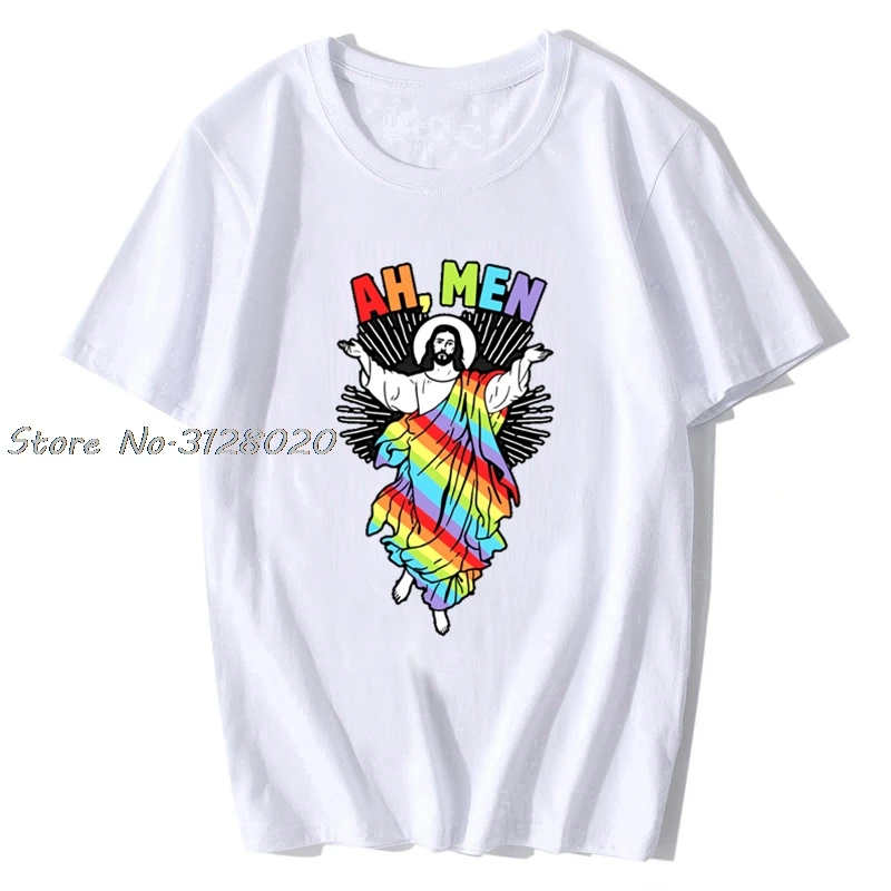 Мужская футболка с надписью Ah, забавный ЛГБТ, гей-Прайд, Радужный Флаг Иисуса, подарок с Богом, уличная одежда из футболки, топы хлопка в стиле Харадзюку
