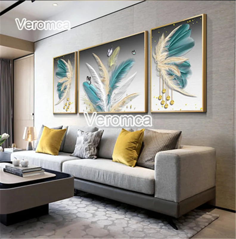 Алмазная вышивка с мечтательными перьями, декор для гостиной, картина 5D сделай сам, Триптих, Набор для вышивки крестиком, квадратные круглые сверла icon star icon star icon star icon star icon star