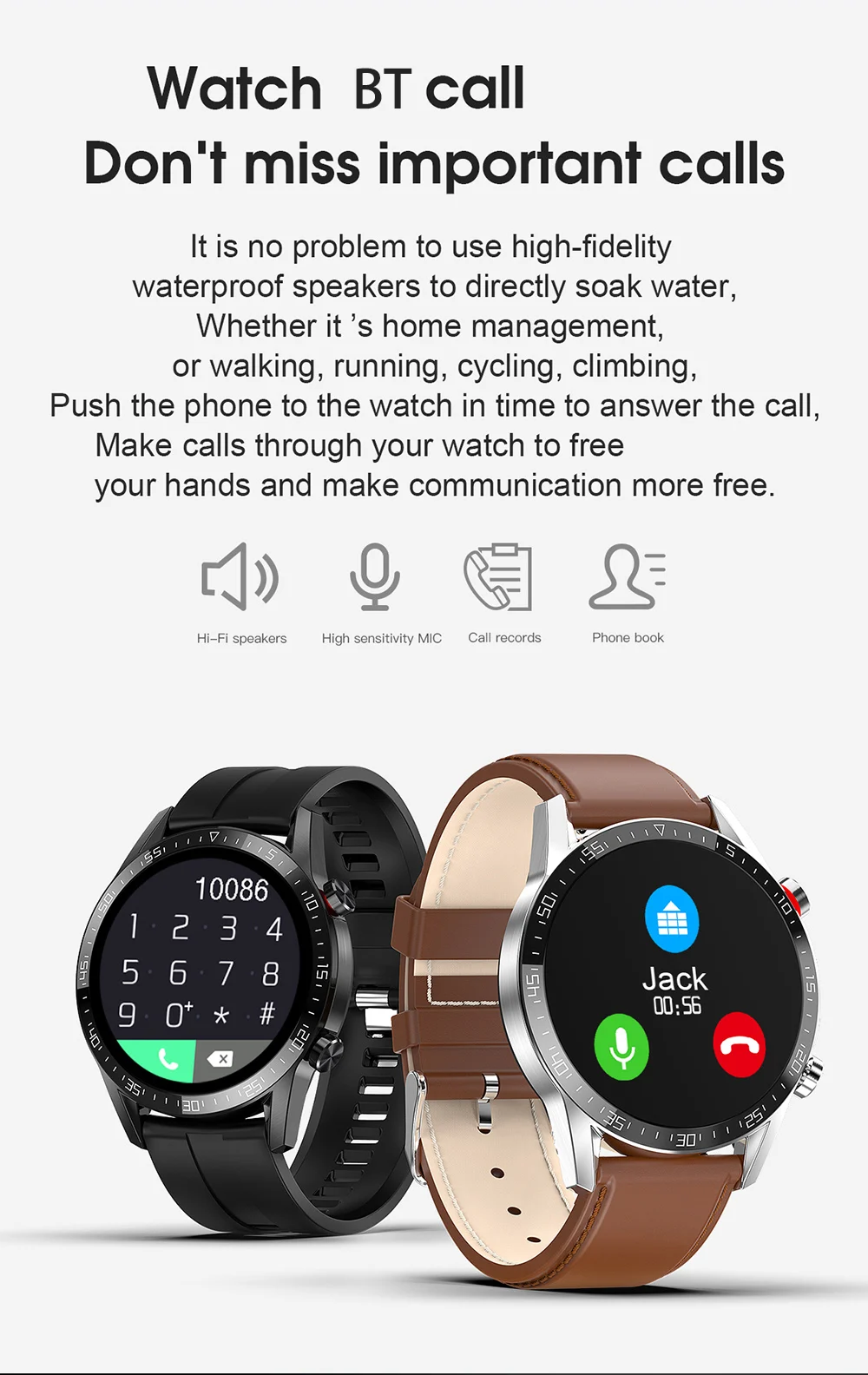 Модные водонепроницаемые умные часы класса IP68, до уровня IP68 (глубина глубины 1,5 м на 30 минут)Шаги, монитор сна, частота сердечных сокращений, вызов BT, синхронизация уведомлений.Поддержка языков часов: китайский, английский, немецкий, испанский, итальянский, французский, португальский (Португалия), португальский (Бразилия), русский, индонезийский, малайский, польский, вьетнамский, тайский, турецкий,BT: звонки, SMS, уведомления Facebook,Twitter и т. д.Пульсометр, измеритель артериального давления и измерение кислорода в кровиСледите за своим здоровьем день и деньШагомер: выбор нескольких спортивных режимов, шаги, калорийность, запись расстоянияСидячий: время тренироваться, изменить нездоровый режим жизниМониторинг сна: анализ качества вашего снаЗащита от потери: потеря напомнит обеим сторонамМузыкальный проигрыватель: Управляйте воспроизведением музыки на телефонеСинхронизация телефонной книги: телефонная книга с мобильным телефономSMS: Синхронизация SMS на мобильном телефоне, возможность отправки шаблонов, iOS пока не поддерживаетЖурналы Вызовов: Синхронизация истории вызововДругие функции: будильник, календарь, секундомер, калькулятор, запись и т. Д.
