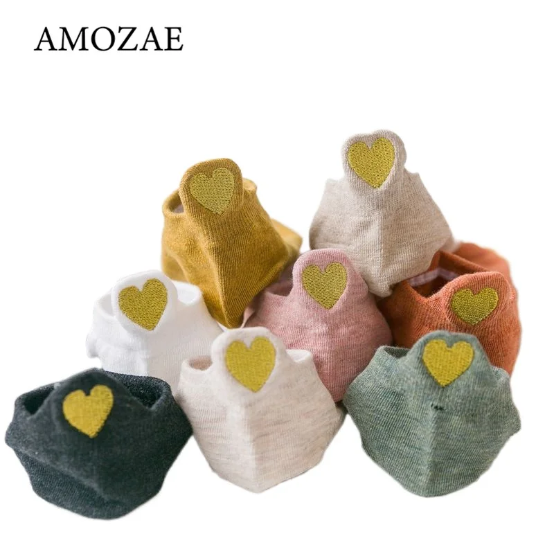 Носки женские хлопковые,4 пары,тапочки женские домашин ,в стиле Харадзюку,Милая форма сердца,однотонные,дышащие, до щиколотки, удобные носки из хлопка,Весна лето