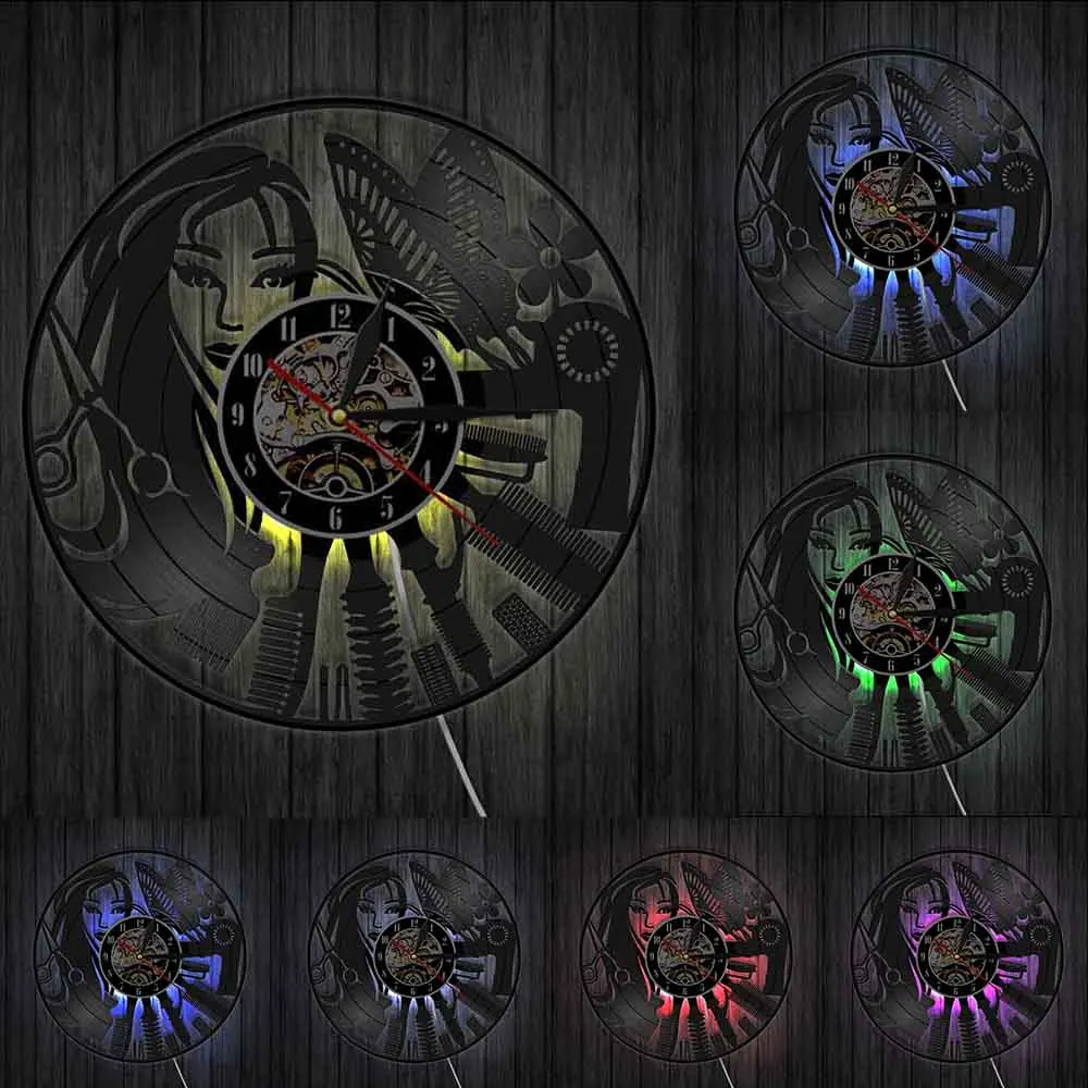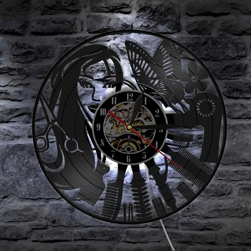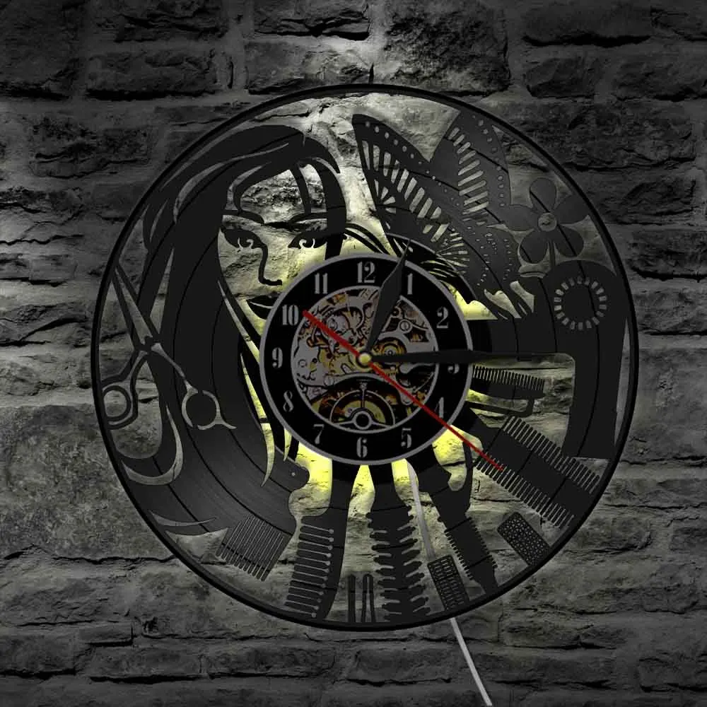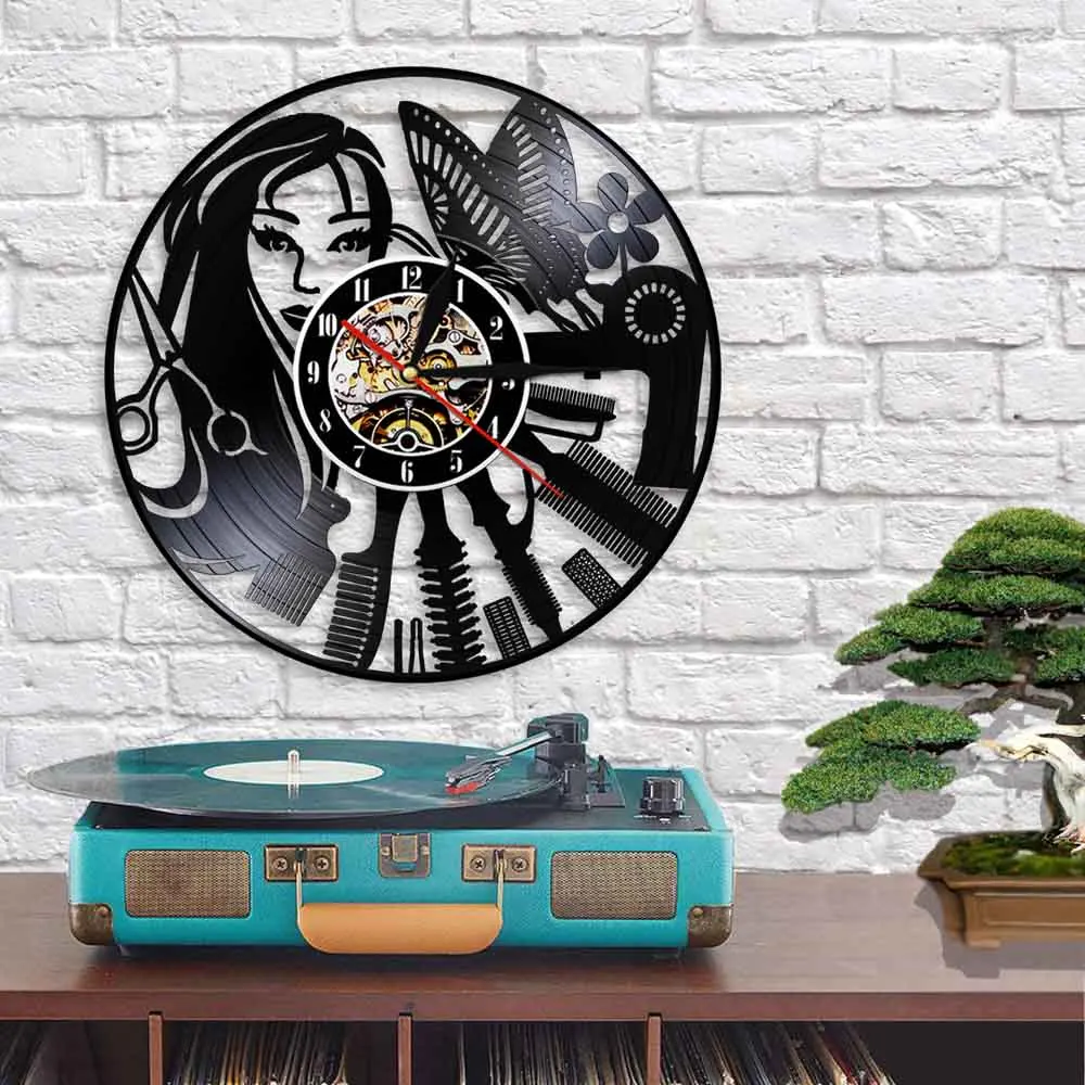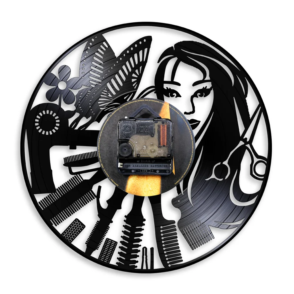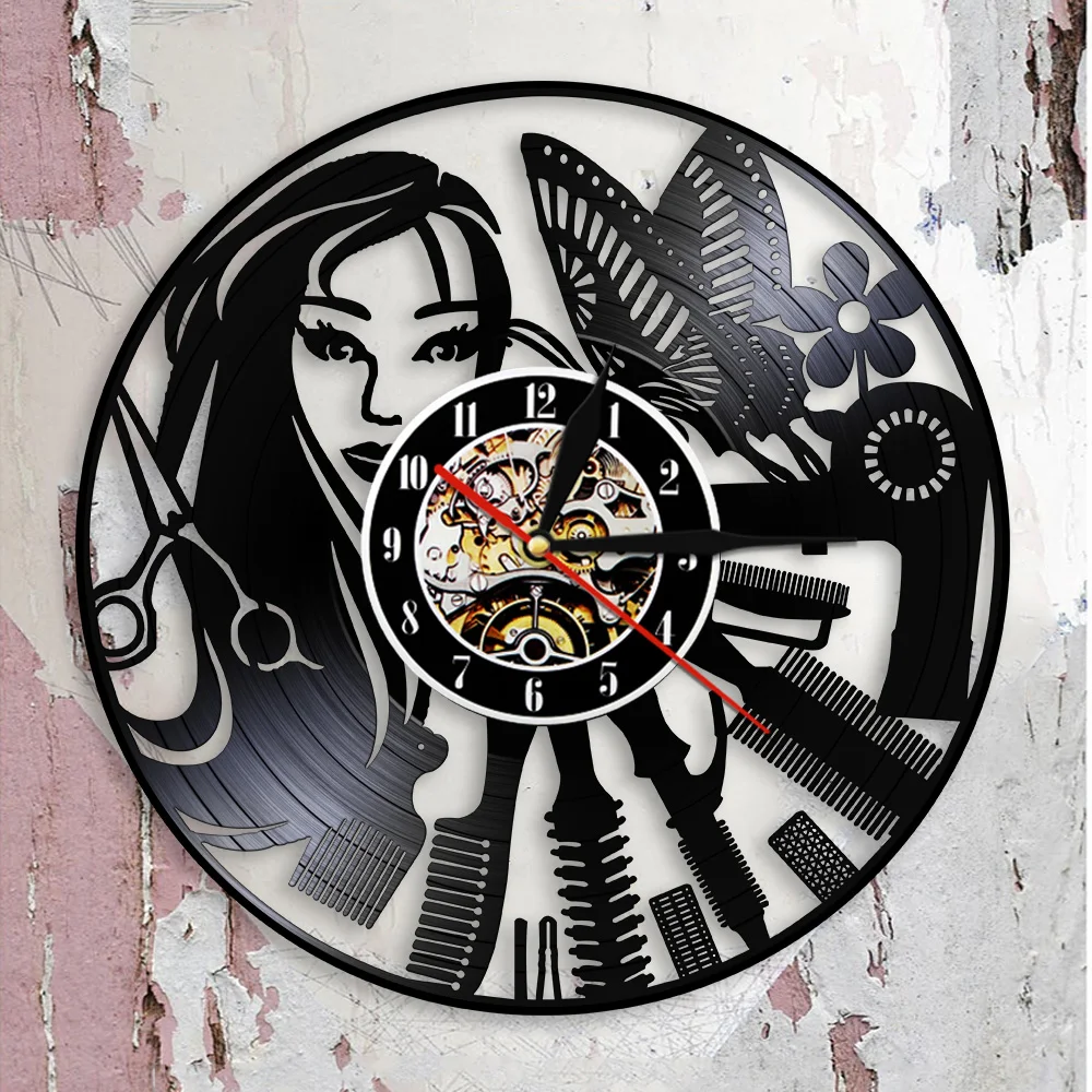 Часы для парикмахерской, тихие кварцевые настенные часы с виниловой пластиной, для украшения дома и салона красоты