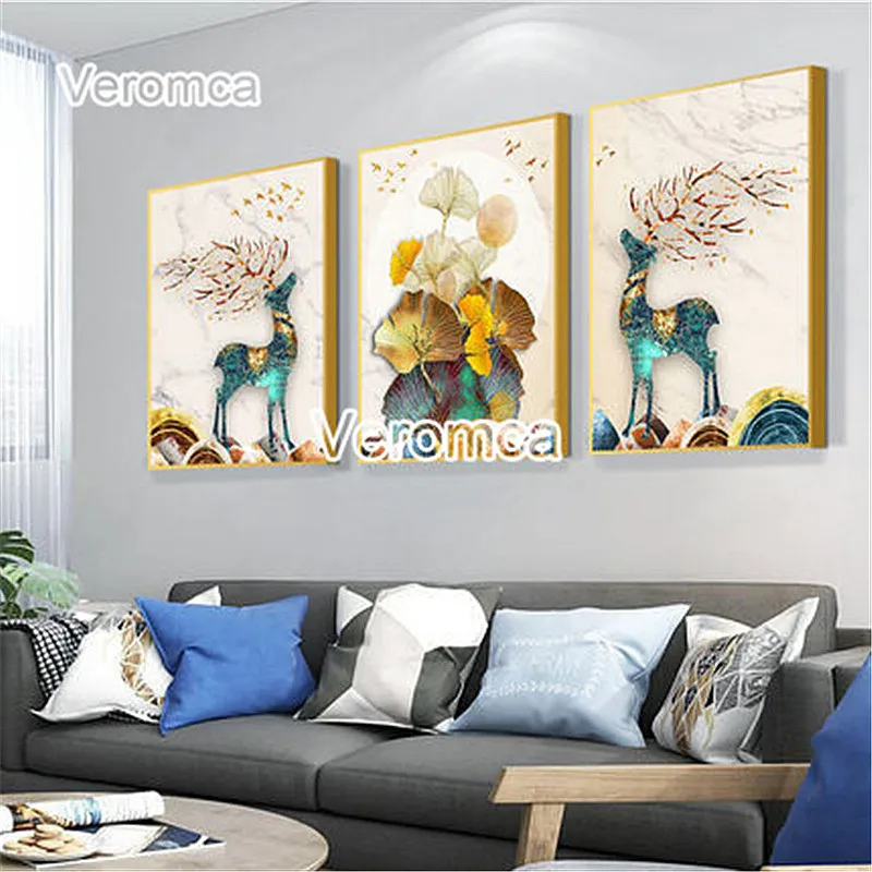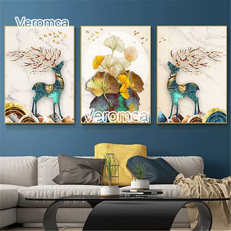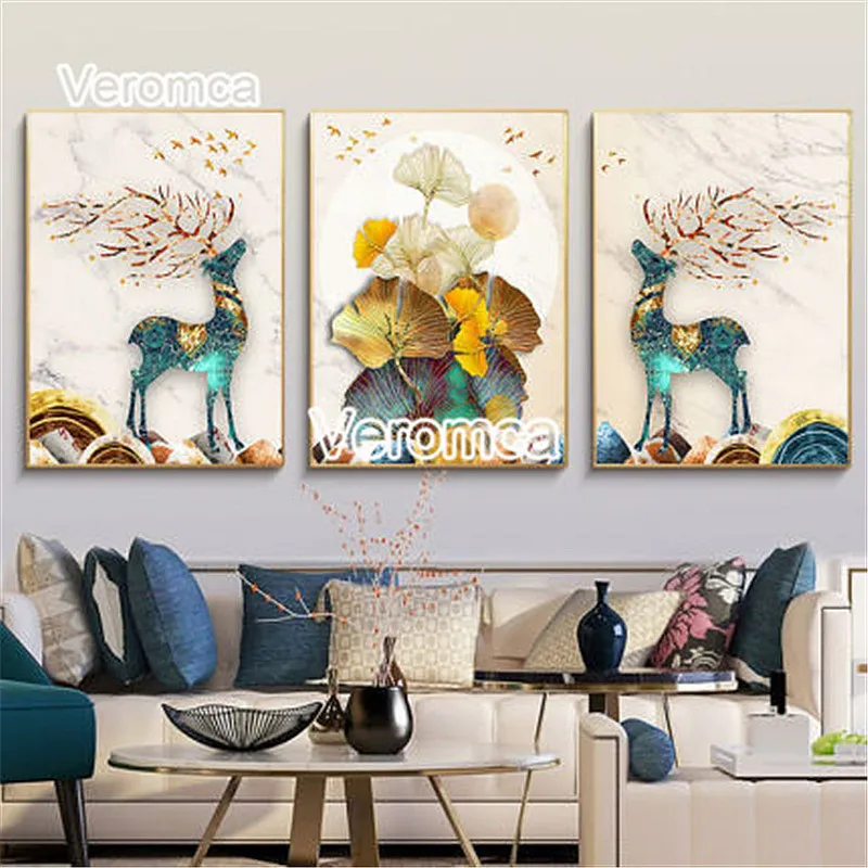 Алмазная вышивка 5D "сделай сам", картина с золотыми листьями лося, пейзаж, Триптих, полная Алмазная вышивка, декор для стен гостиной icon star icon star icon star icon star icon star