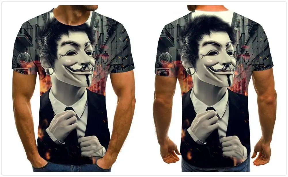 Мужская футболка с 3D-принтом Вендетта, летняя спортивная футболка ...