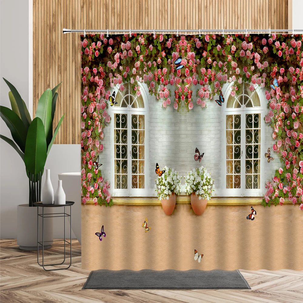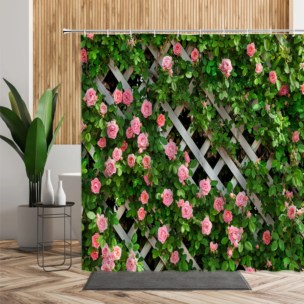Зеленые растения цветы занавеска для душа s Бабочка Роза забор стен...