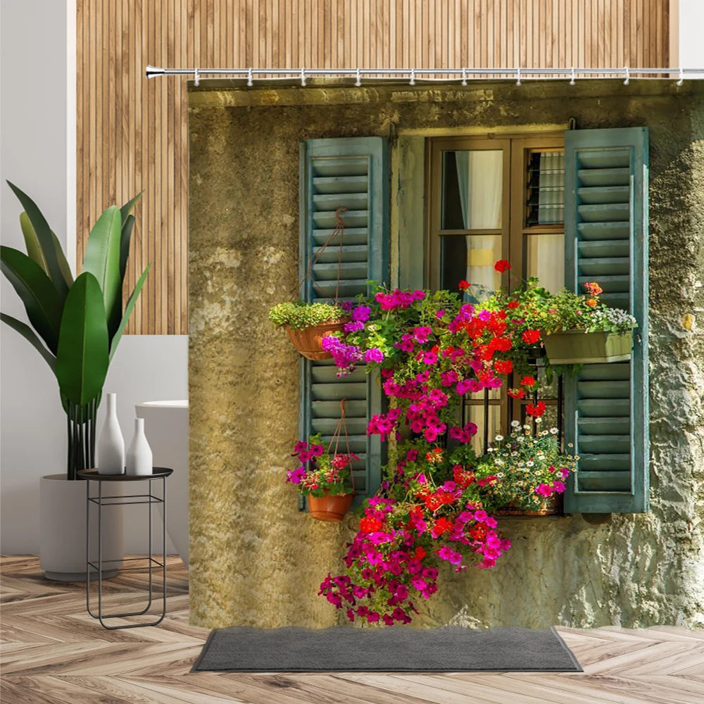 Винтажная городская розетка, дневная душевая занавеска, цветочный п...