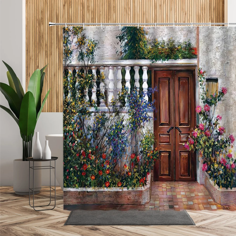 Занавеска для душа в стиле ретро уличный пейзаж, садовый занавес с ...