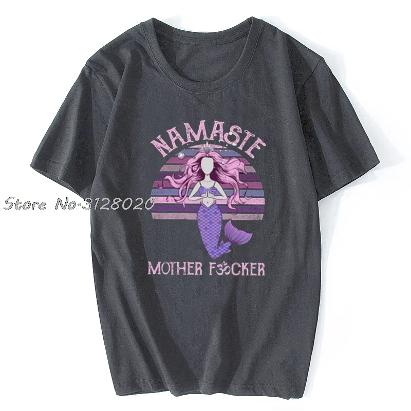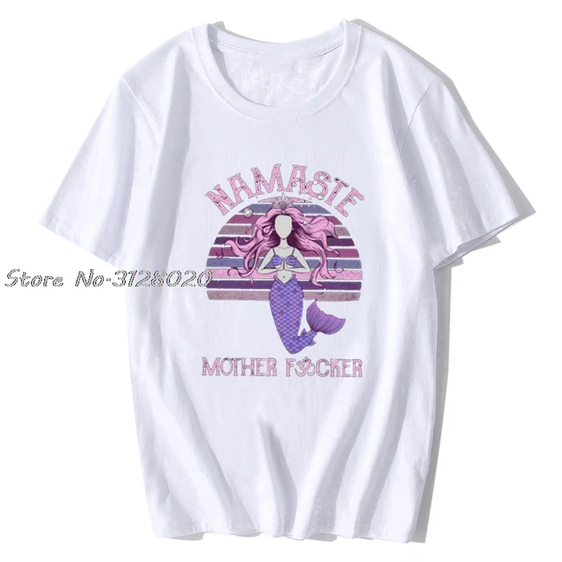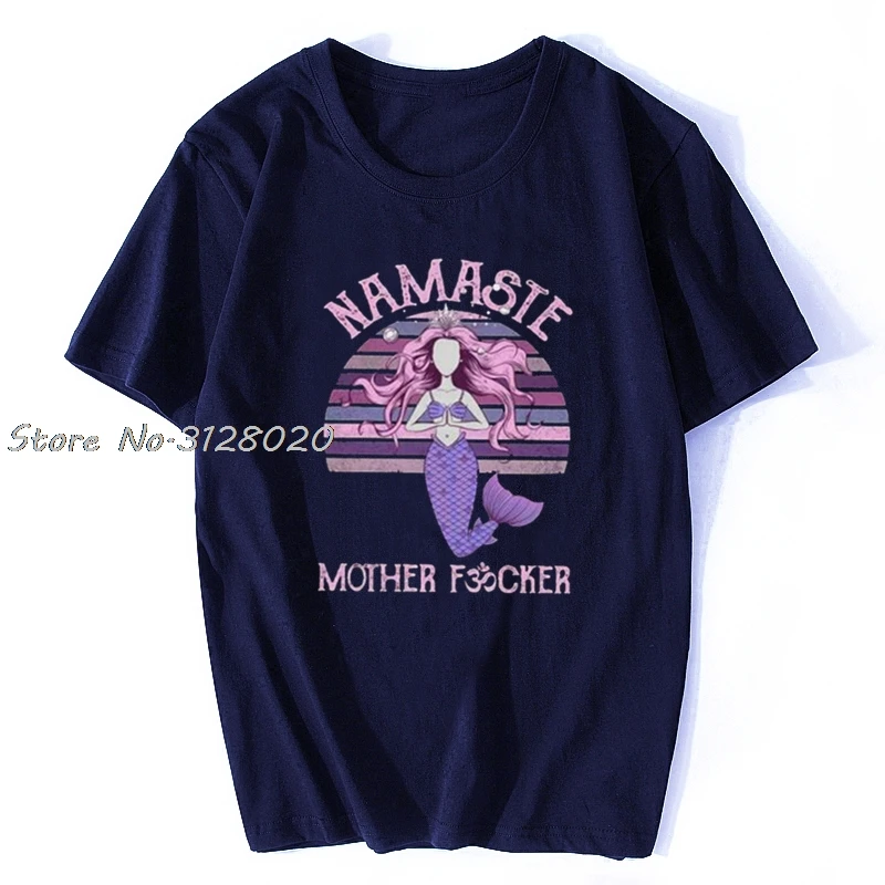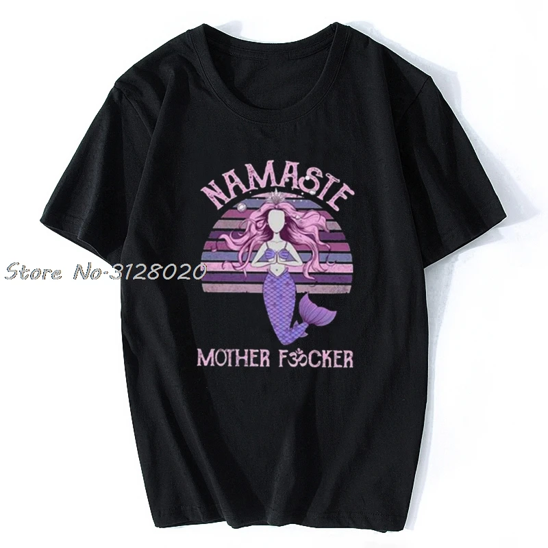 Йога Русалка Намасте мать Fvcker в винтажном стиле; Женская, Мужская футболка, хлопок, футболки, топы в уличном стиле Harajuku
