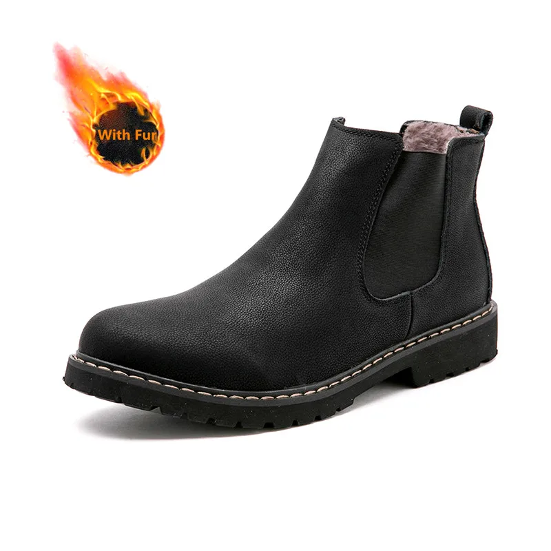 Мужские кожаные ботинки челси в британском ретро стиле, Классические уличные удобные теплые ботинки большого размера с мехом для зимы