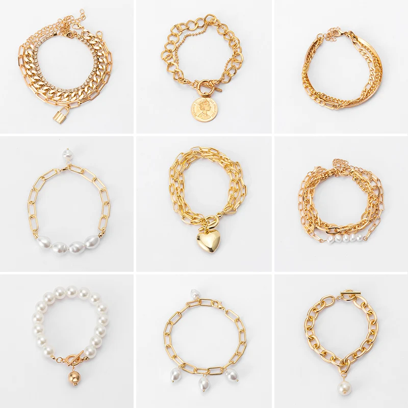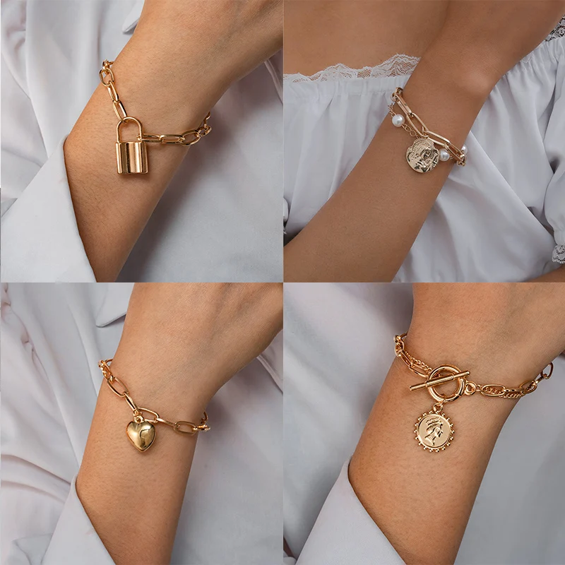 Новый Панк богемный браслеты из золотой цепи для женщин массивные металлические монеты браслет с жемчугом 2021 тренд Женские винтажные украшения
