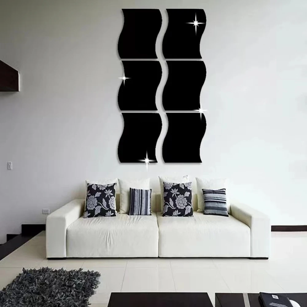 6 шт. 3D зеркальные настенные наклейки, волнистые акриловые декоративные настенные зеркала для макияжа, ванной, гостиной, настенное украшение для дома