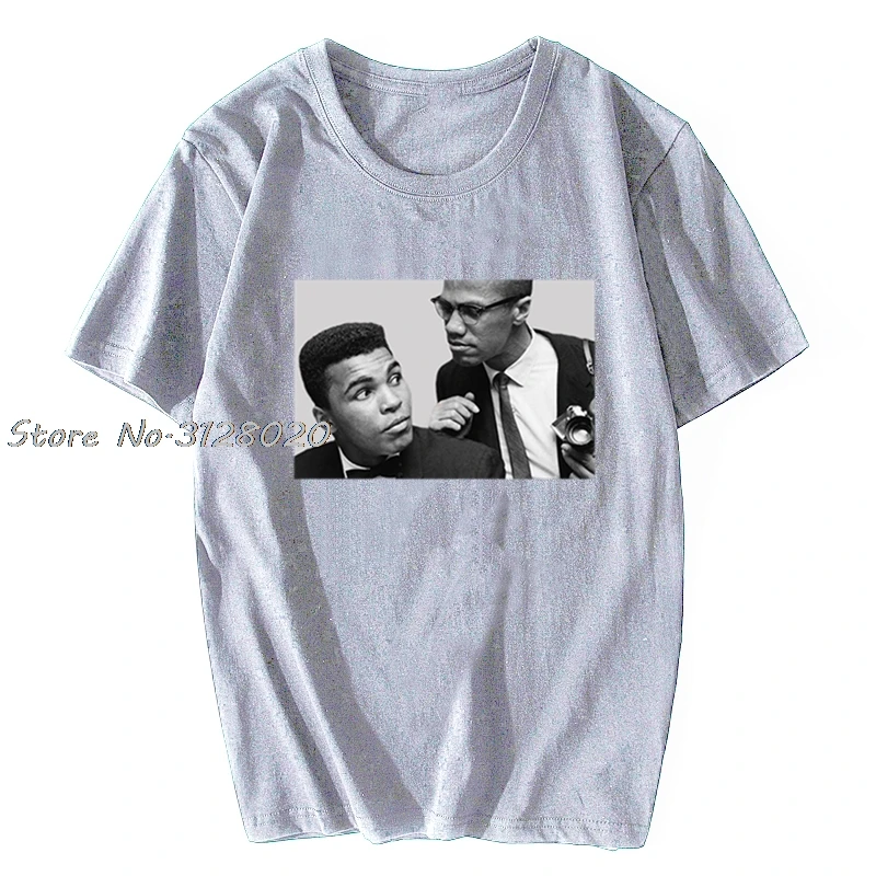 С изображением Мохаммеда Али и цитатой боксер Boxinger Малкольм X самая большая футболка подарок Для мужчин хлопок футболки, топы в уличном стиле Harajuku