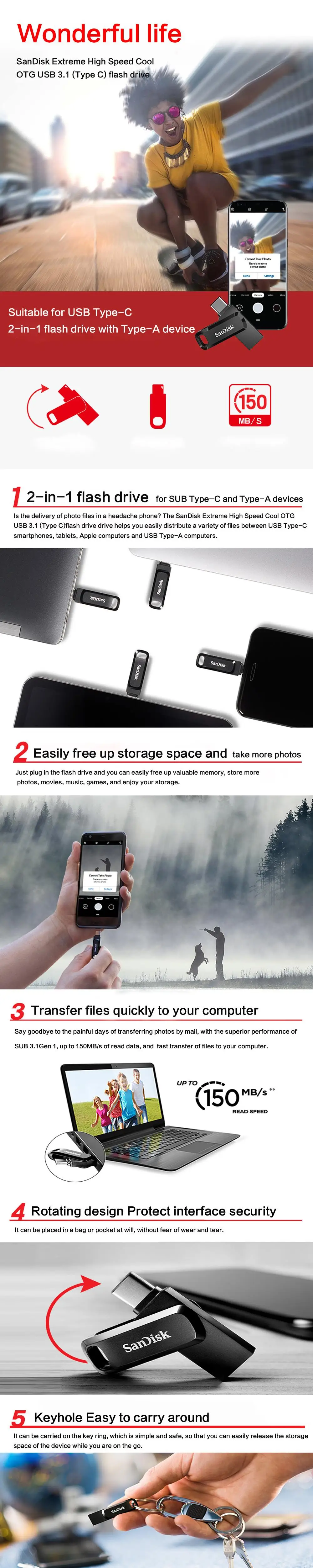 Флэш-накопитель Sandisk SDDDC3 Type-C Ultra, двойной OTG USB флеш-накопитель, 256 ГБ, 128 ГБ, 64 ГБ, 32 ГБ, флешка USB для смартфона, флешка для хранения