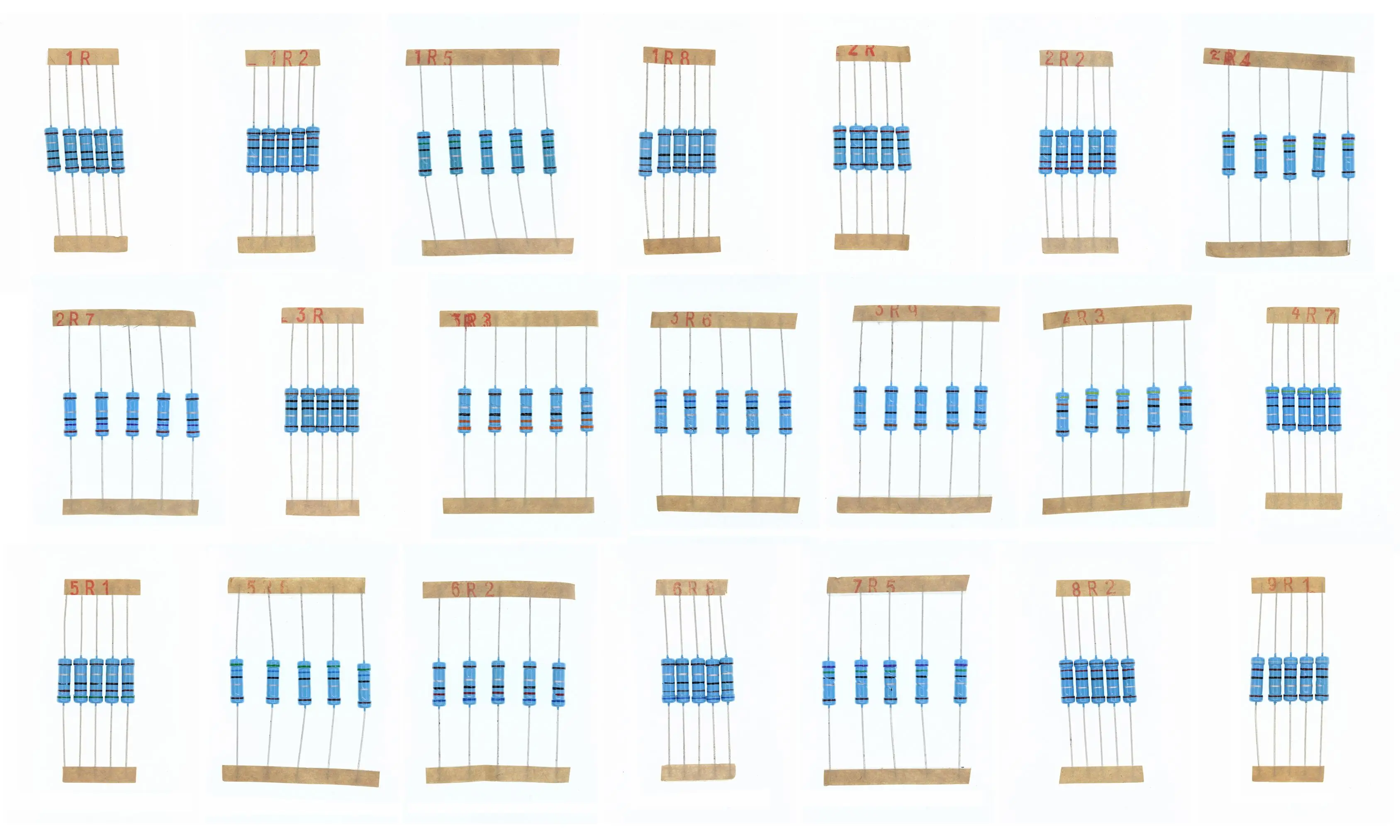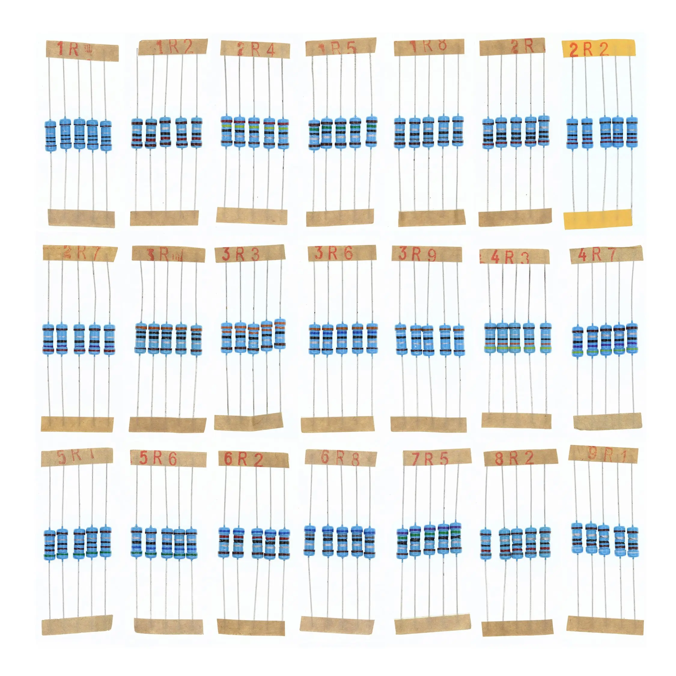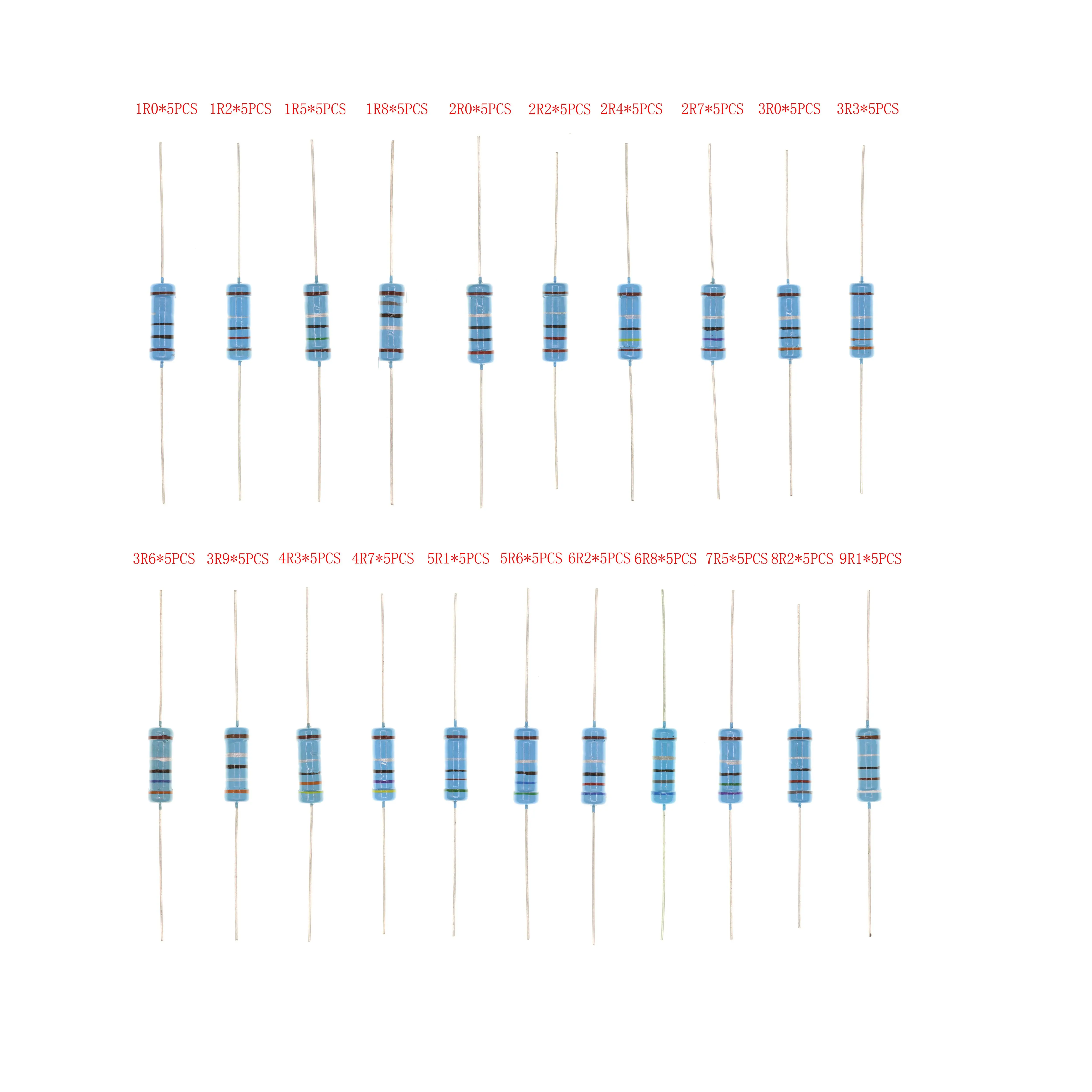 5 шт. * 21 значения 1 Вт 2 Вт 3 Вт 1% металлического пленочного резистора 1R0 9R1 комплект резисторов 1.0Ohm 9.1Ohm