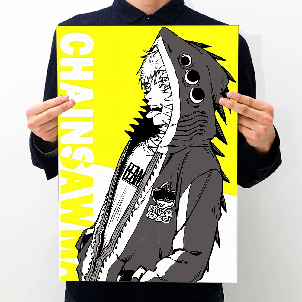 Аниме бензопила человек японское Ретро Плакаты Wall Art манга картина Бумага принты домашний Декор Наклейки на стены из плотной ткани Подростковая