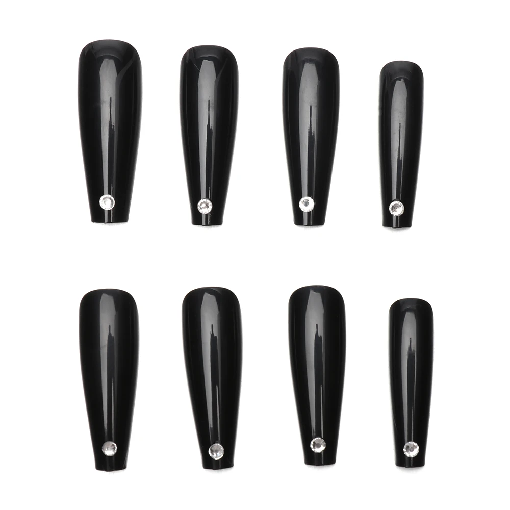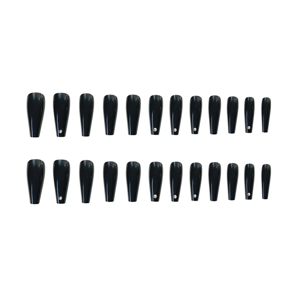 Накладные ногти черные, съемные, стразы, длинные, накладные ногти, французские, полное покрытие, Типсы для маникюра, 24 шт.